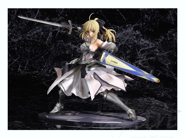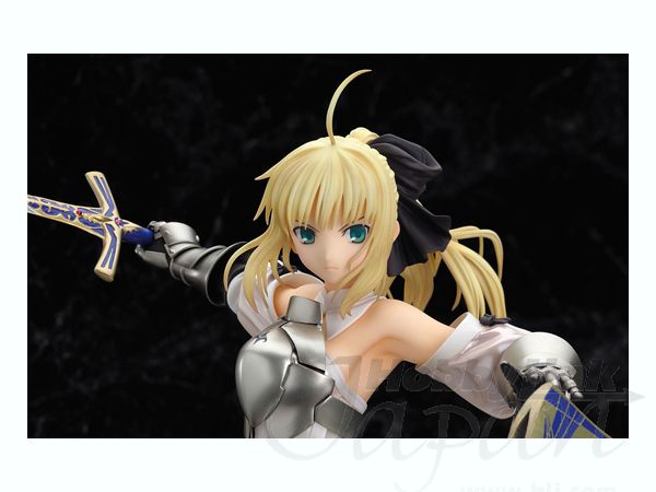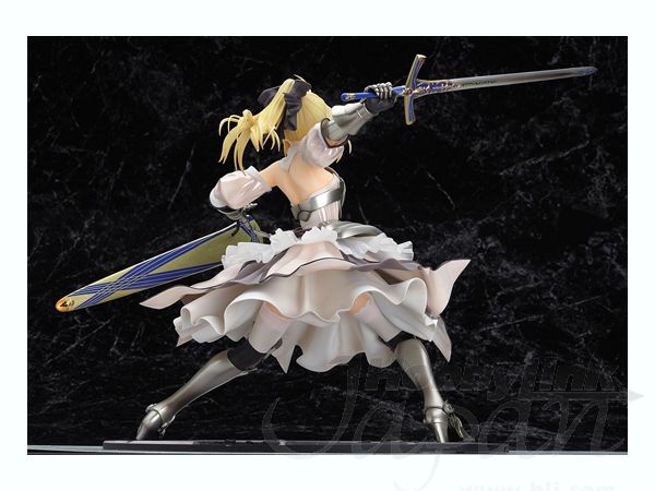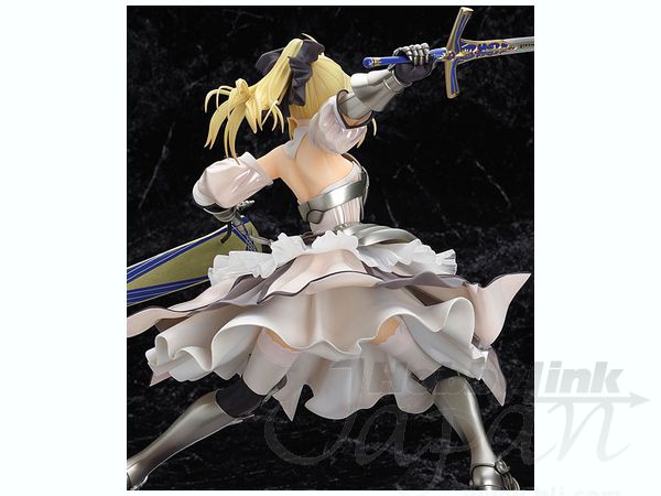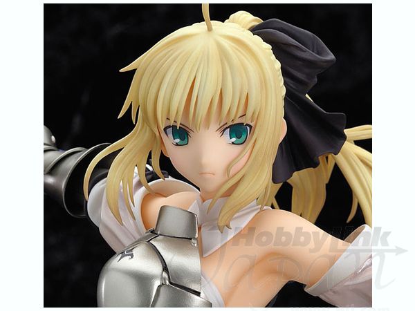 First appearing in the "Fate/unlimited codes" PS2 video game, the pure white royal knight Saber Lily now makes her PVC figure debut produced to the high quality standards that we've come to expect from Good Smile Company! She is captured in a stunningly detailed and dynamic pose recreating her "Distant Avalon" finisher. Her signature swords Caliburn and Excalibur are included along with her scabbard Avalon. A custom display base is provided. Please note that the photos shown are of a prototype; the production version may vary. Also, figures such as this are mass produced and as a result some inconsistencies in finish and painting may occur; these are not considered manufacturer's defects. If you absolutely must have perfection, prepare to do some touch-up work on your own.