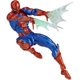 Your friendly neighborhood Spider-Man returns to the "Amazing Yamaguchi" action-figure lineup from Kaiyodo -- newly modeled and with more advanced posability! A more evolved system of jointing makes this Spidey figure more expressive and playable than ever before, with 26 points of articulation! By moving both sides of the torso, the shoulder blades can be moved back and forth, and additional joints are included on his shins to recreate the bending effect so often seen in the comics. Although he's still slender, his muscles are expressed with more edgy details, and the texture of the high-tech material his suit is made from is highlighted with metallic paint for a more realistic atmosphere.