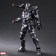 The figure’s form is rugged and heavily built, and the reactor at his chest glows a vivid red color, contrasting with the gunmetal black iron color of the suit. The distressed effect on his suit that tells the tale of his many battles also adds to the realism to this VARIANT PLAY ARTS KAI War Machine. Figure includes display stand.