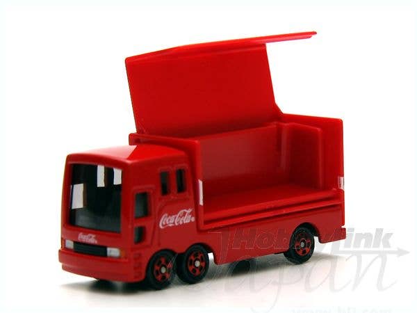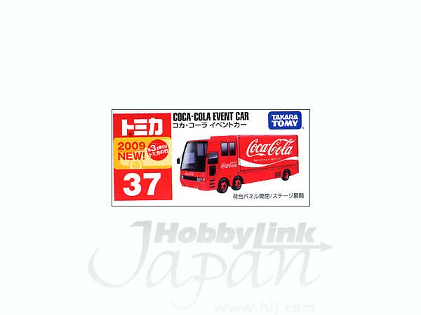 A nicely finished die-cast Tomica model of a Coca-Cola Event Car.