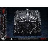 The small box it comes in is an original design by Prime 1 Studio. With a skull, sword, and rose vines, it is inspired by the Skull Knight, who is deeply connected to the Behelit. The velvet-like fabric lining and the LED-lit sacrificial brand also convey a glimpse of the abyss. Order this incredible item for your own collection today!