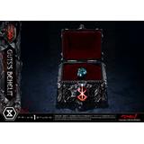 The small box it comes in is an original design by Prime 1 Studio. With a skull, sword, and rose vines, it is inspired by the Skull Knight, who is deeply connected to the Behelit. The velvet-like fabric lining and the LED-lit sacrificial brand also convey a glimpse of the abyss. Order this incredible item for your own collection today!