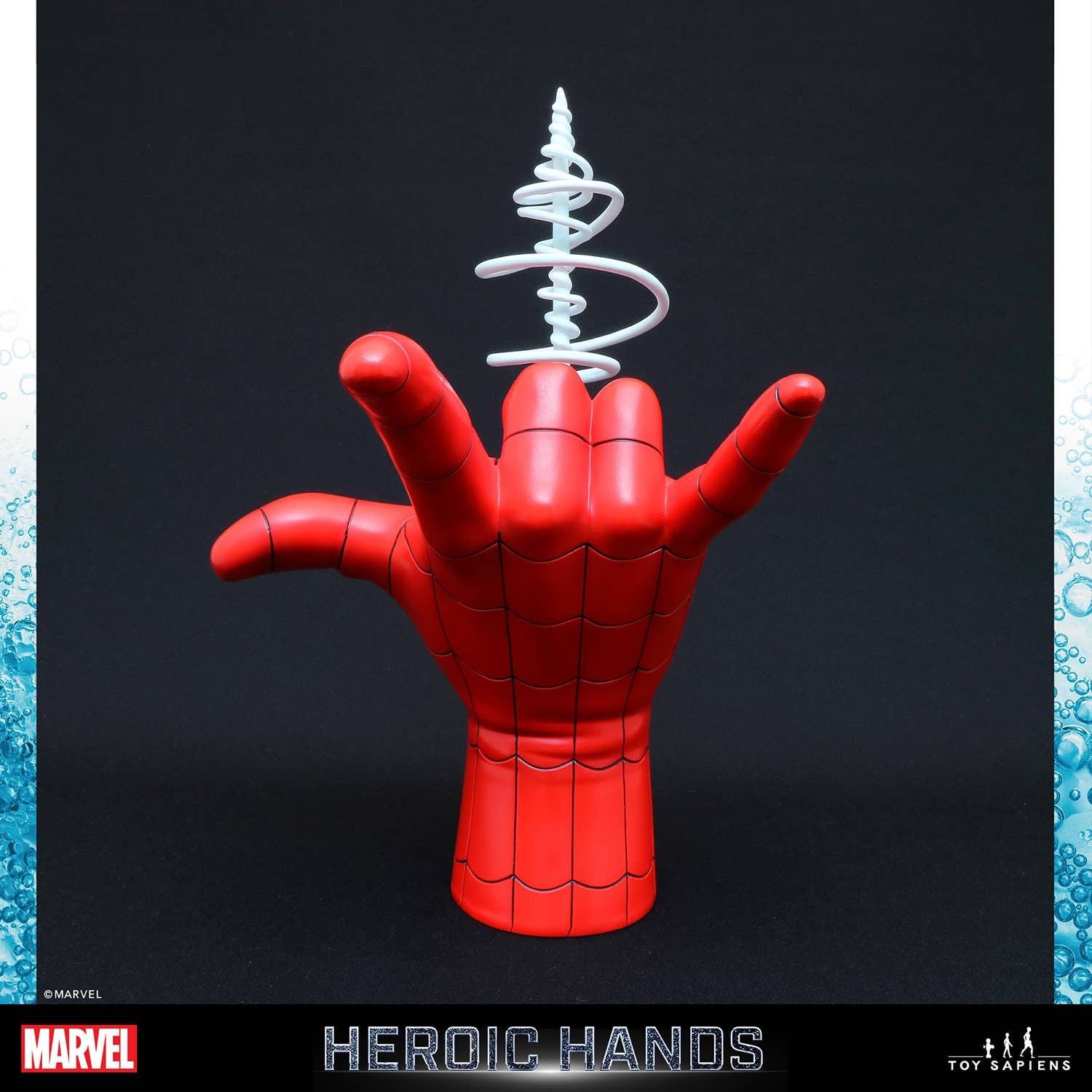 Marvel's legendary Spider-Man launches Toy Sapiens' original project, Heroic Hand! This figure lineup concentrates on the hands of our favorite heroes, sculpted in great detail and presented life-size for maximum impact! Spidey's hand is, of course, depicted operating his wrist-mounted web shooter, with the emerging web strands, the details of the web shooter and the pattern on his outfit all carefully represented. The web strand can be removed if you prefer. Add this unique and unusual item to your collection today!