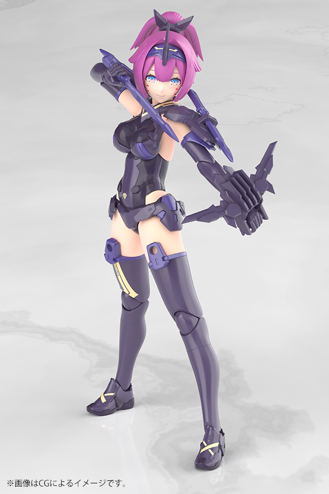 Asura Archer Kizuna Shadow Edition Full Package is the latest addition to Kotobukiya's "Megami Device" series! She features new coloring and additional weapons compared to Asura Archer Kizuna! Asura Archer Kizuna's proportions have been significantly altered, giving her a silhouette on part with the "Kou Miko" series, and this armed version adds the weapons of the standard Asura Archer. And in a first for the "Megami Device" series, she also comes with four pre-printed faces, making this a truly complete package! The design is handled by Asura designer Nidy-2D-, and the "Machinica Block 1.5L" body designed by Apsy Masaki allows for dynamic, beautiful poses!
