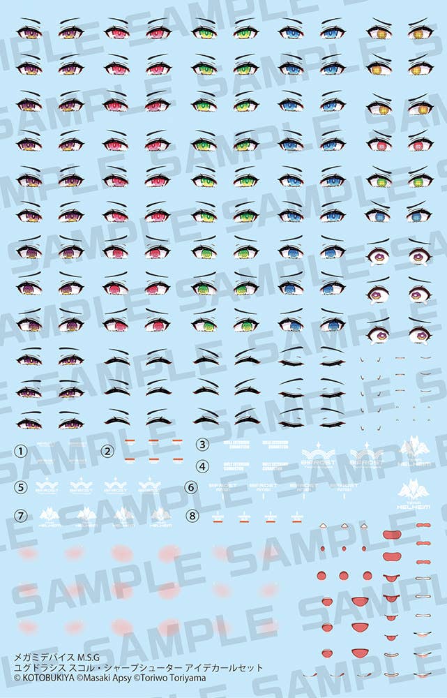 This is a sheet of water-slide decals, dry transfers, or self-adhesive stickers for use in detailing anime or science-fiction kits.