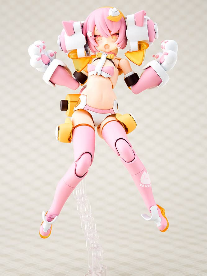 The 3mm connection points on each part and head compatibility parts allow this model to be customized with existing "M.S.G," "Frame Arms," "Frame Arms Girl," "Hexa Gear," "Sousai Shojo Teien," "Arcanadea," and "Megalo Maria" series parts.