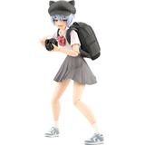 Eimi Nijimura, the elusive paparazzi girl, finally makes her appearance in Kotobukiya's "Sousai Shojo Teien" action-figure model-kit series! She also works as a PR character for the Sousai Shojo Teien series at hobby centers! Her charm points are her always sleepy eyes, slightly thick eyebrows, and cat-like mouth. She comes with three interchangeable faces, each with her gaze in a different direction! Decals are also included for the included unpainted face parts. Her trademark cat-ears newsboy cap is removable; it's designed to be attached to a special bangs part when she's wearing it. She also has bangs for when she's not wearing her cap, as well as a set of glasses-compatible bangs! A special body part with a forward-leaning posture is included, for when she's ready to leap into action to grab a great photo! While most of her body is the same as Takanashi Koyomi (Reiho High School summer uniform), newly sculpted parts have been added for aggressive poses! Three types of body parts are included: a normal one, one with the left shoulder raised, and the forward-leaning version. Her skirt is available in a normal type, a fluttering version, and one for sitting poses; an additional fluttering skirt part is included that allows her left leg to be braced forward. Her camera comes with both short and long lenses, and her large-capacity backpack includes belts for a normal posture and another for leaning forward. Pre-painted parts are included for her pale-blue-and-white two-tone sneakers! A total of 11 different types of interchangeable hands are included so she'll be ready for any situation; the pen-holding hand and notebook-holding hand can be used with the pen or notebook included with the After School set (sold separately). Order this aspiring photographer for your own collection today!