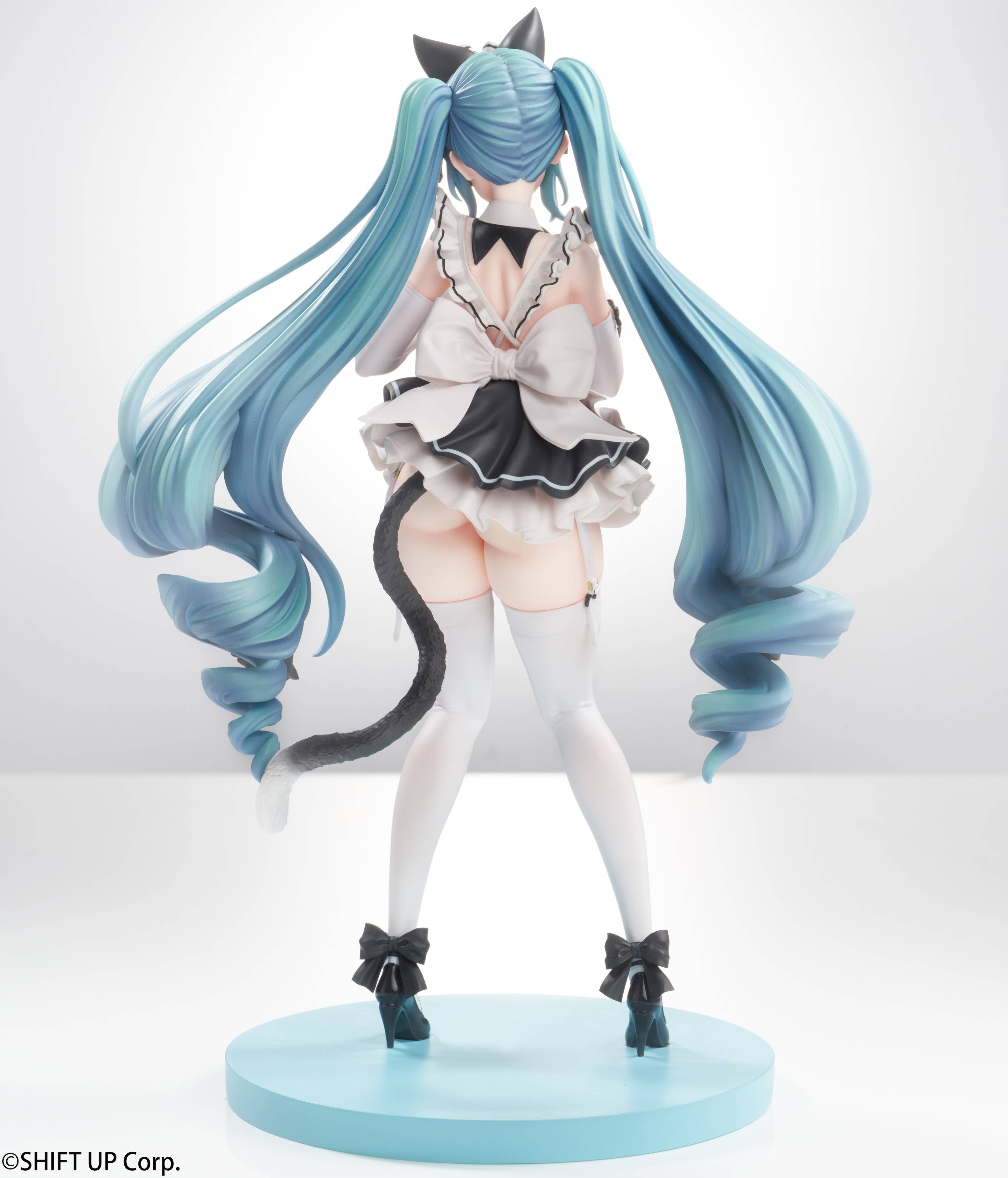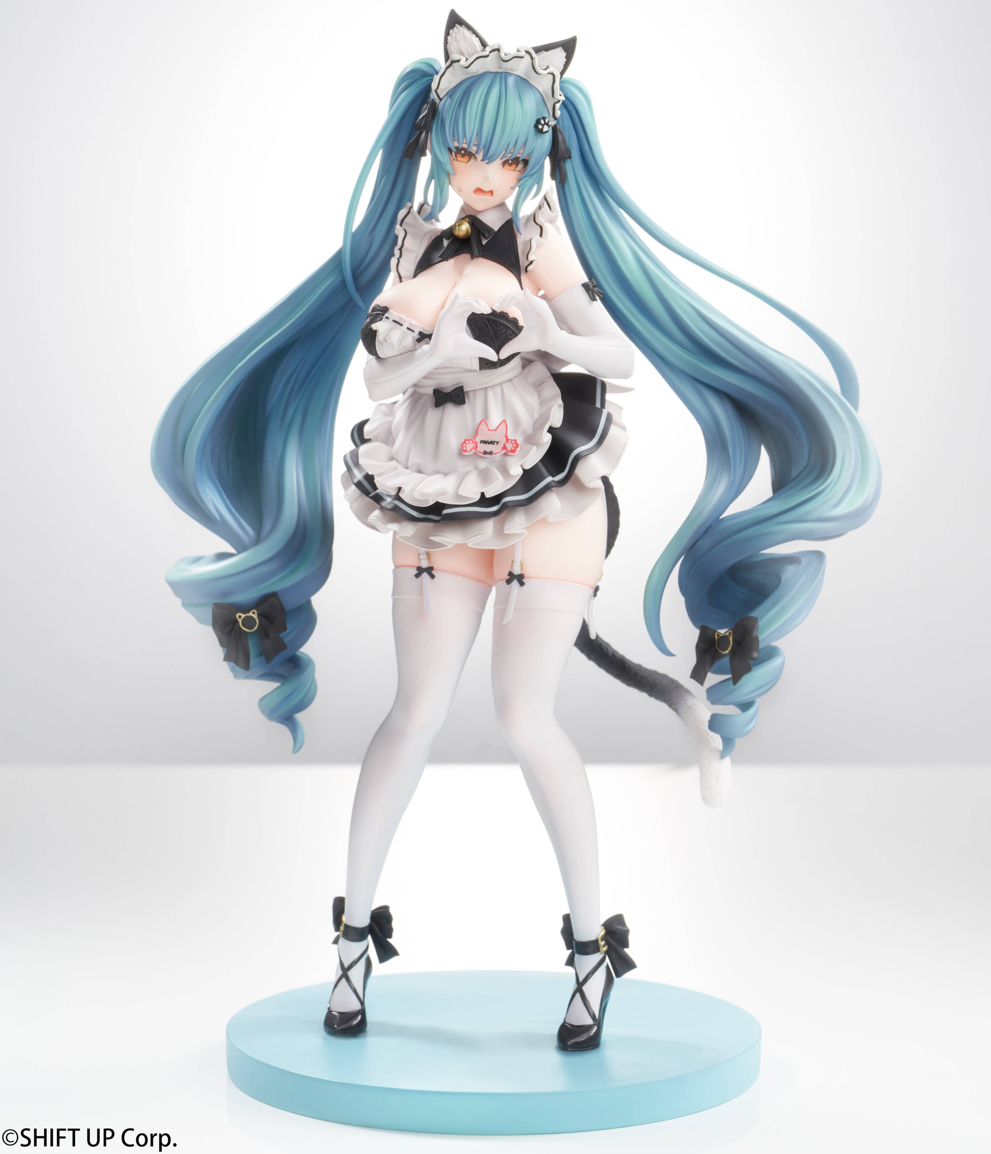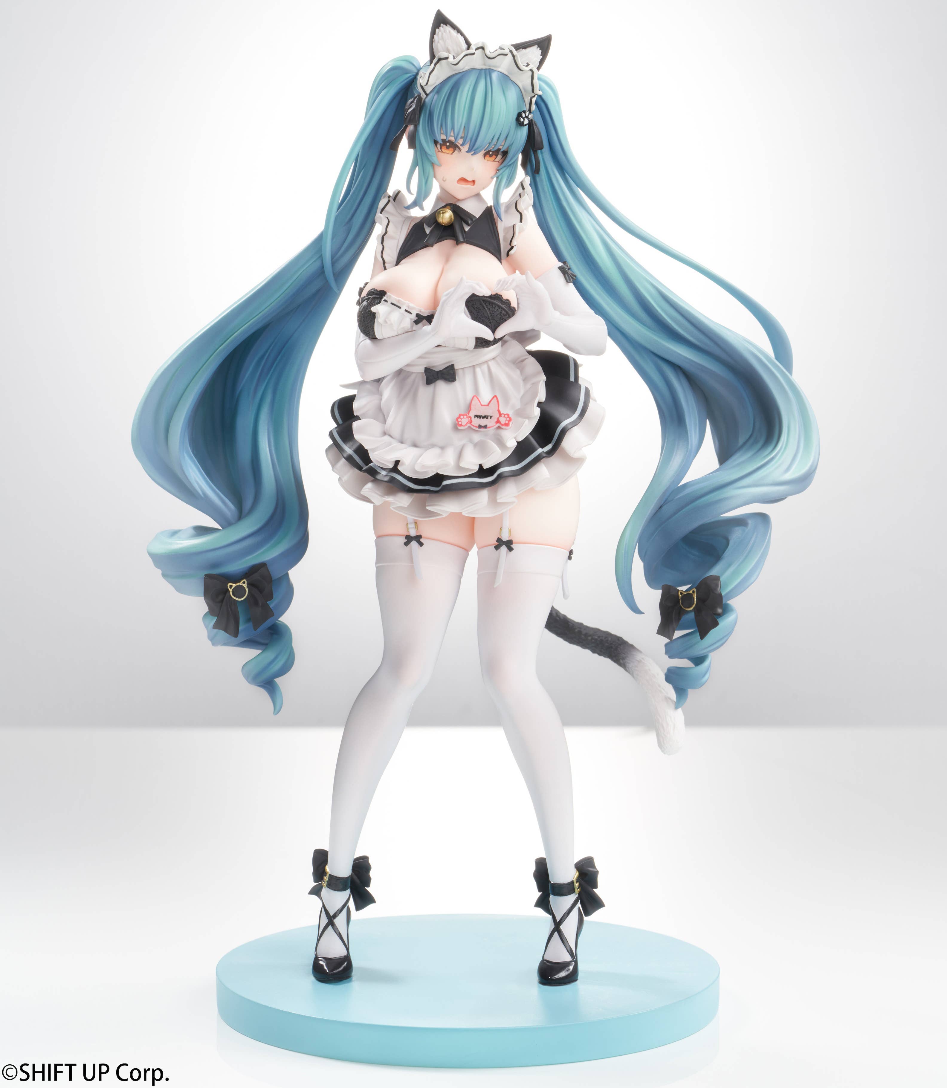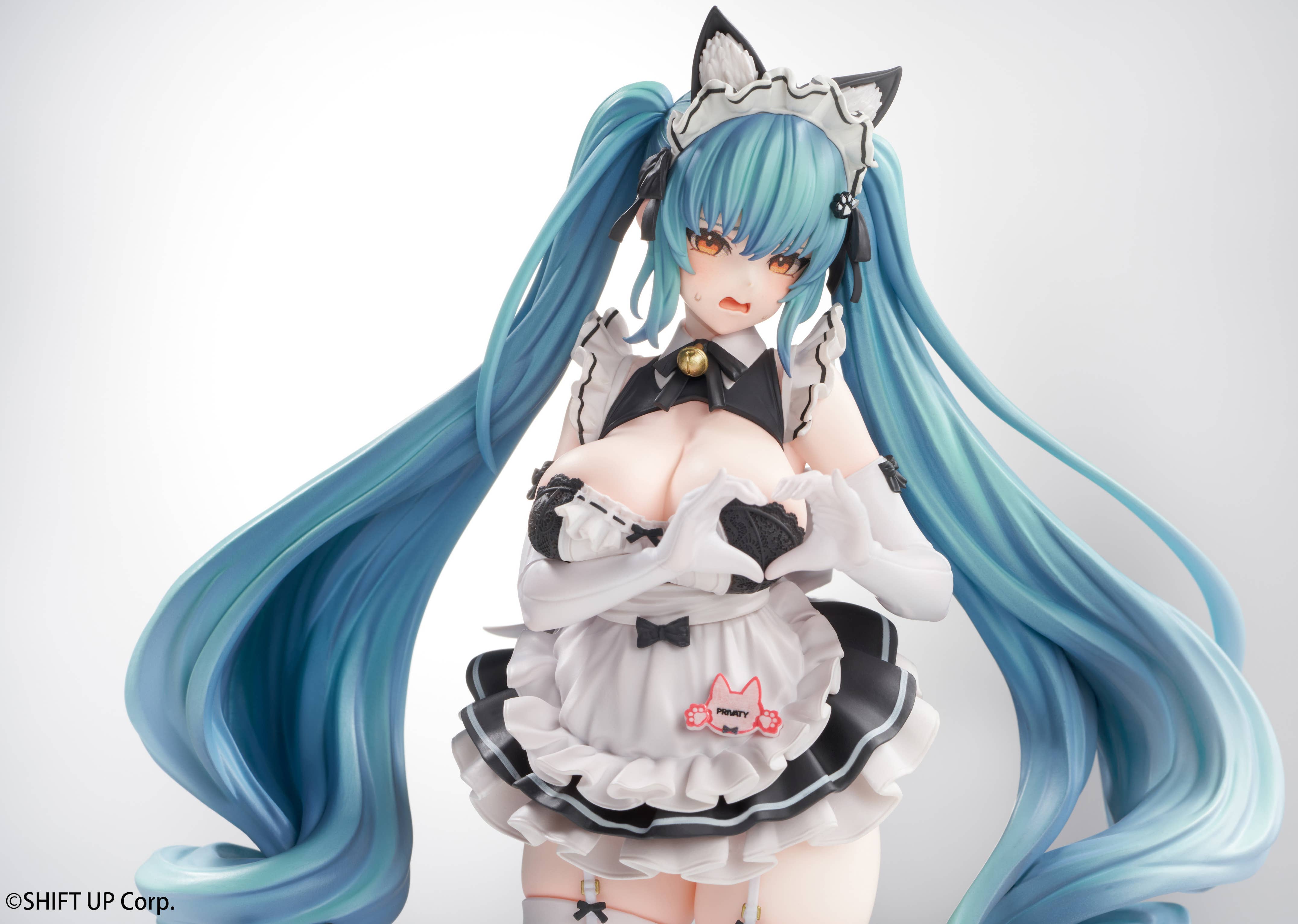 Privaty from the popular smartphone game "Goddess of Victory: Nikke" joins Hobby Sakura's figure lineup wearing her "Unkind Maid" outfit! She gives us a heart-hands gesture, although she's plainly unhappy with the revealing maid outfit she's wearing, cute as it may be! Her base is included. Order her for your own collection today!