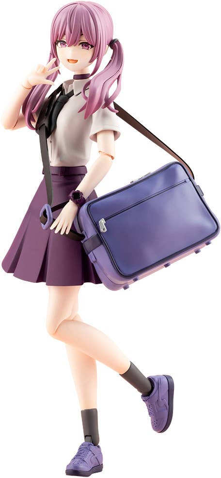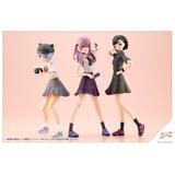 This figure features the "YOMI" body. The unique accessories such as the watch on her forearm and the choker necklace are eye-catching! In addition to a standing upper body part, she also comes with an upper body part with her left shoulder raised, and a sitting part that allow you to recreate situations where she's reaching for something high overhead. Her skirt comes in three types: standard, fluttering, and seated. The overall coloring has been completely redesigned, while maintaining the play value of being able to create a wide range of poses by combining parts.