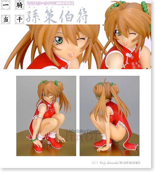 Beautifully prepainted PVC model of Sonsaku Hakafu, squatting down and putting on a rather cute facial expression. She measures 8cm in height and comes with a white display base.