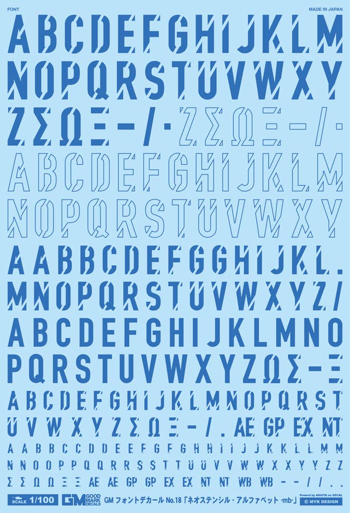 1/100 GM Font Decal No. 18 Neo Stencil Alphabet -mb- Cool Blue