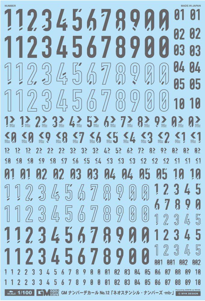 1/100 GM Number Decal No.12 Neo Stencil Numbers -mb- Dark Gray