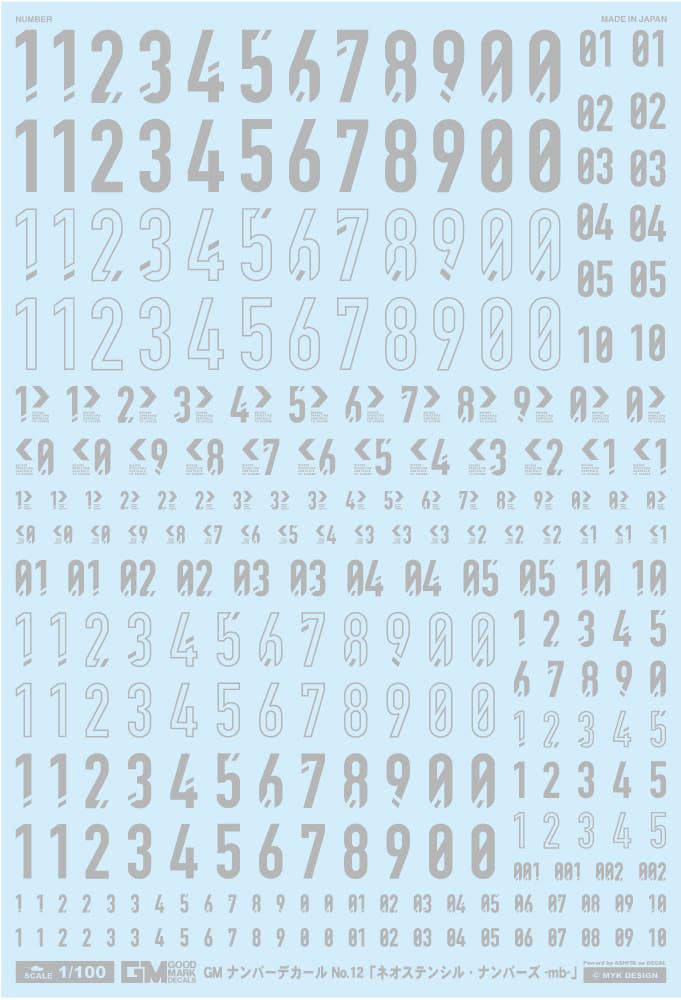 1/100 GM Number Decal No.12 Neo Stencil Numbers -mb- Light Gray