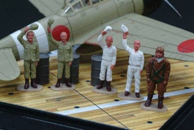 This special Zero Fighter kit recreates a scene of the Zero Fighter being launched with pilot Tetsuzou Iwamoto! One of the top scoring aces in the IJNAF, Tetsuzou Iwamoto's tactics as a pilot were renowned. Parts in this kit come molded in color, but further paint will really bring the scene to life!An aircraft carrier deck seal, and maintenance soldiers are included. 1 AA battery is required for the propellor, which can rotate thanks to a micro-motor. Batter is not included.