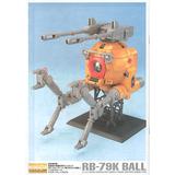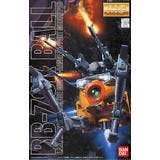 Get excited, everybody, it's the 08th MS Team version of the Ball!! Featuring all the same snap-fit assembly we've come to expect from Bandai, bits and bobs that into the average MG kit, plus stickers for warnings all over, it's sure to be an attention-grabber in anyone's home. Okay, I admit, I'm stretching for things to say. It's a Ball. It's a Master Grade Ball, to be specific. There are no clear panel parts as shown in the photos from Shizuoka. Excellent detail all over, though, and of course it's armed with 180mm cannons.