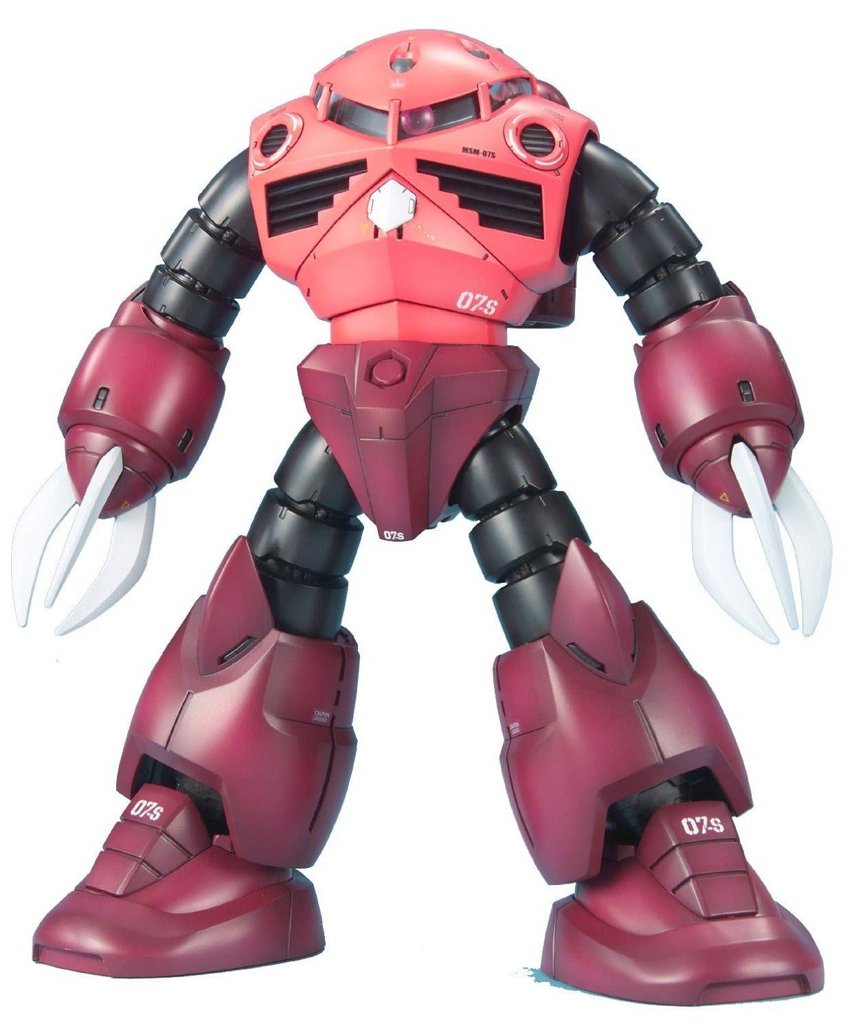 The Master Grade version of Char's customised shiny red Z'Gok is here! The expertly designed inner frame system allows flexibility and poseability to equal the "real" thing in the animated series. The bellows rims (the loopy things on its arms and legs) even stretch out a little, for added reach and flexibility. All in all, a superb kit of an incredibly cool machine.