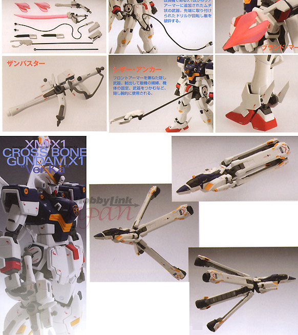 Long time fan favorite Crossbone Gundam X-1, from the popular Crossbone Gundam manga series, finally got the Master Grade treatment and "Ver. Ka"-ed by the legendary mecha designer, Katoki Hajime! Not only does it come with all the armaments for this uniquely designed pirate-looking Gundam such as heat daggers, beam sabers, scissor anchors, brand markers, Zambuster, and an ABC (Anti-Beam Coating) mantle, it also includes a chest part for you to turn it into Crossbone Gundam X-1 Kai (Custom)!