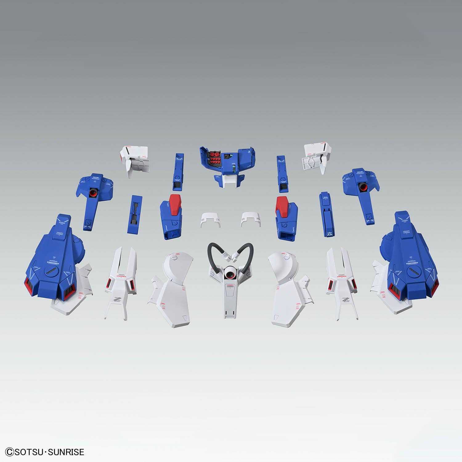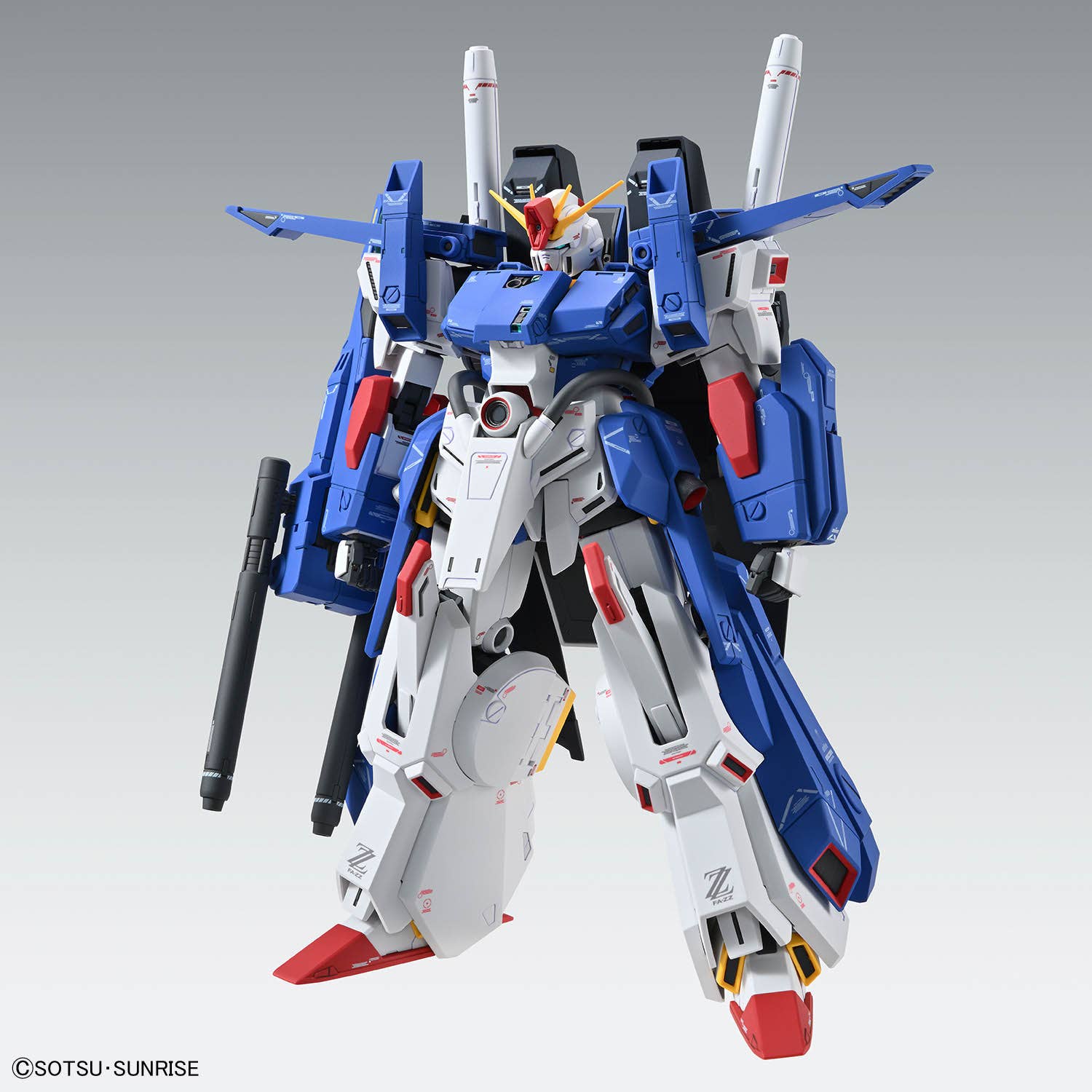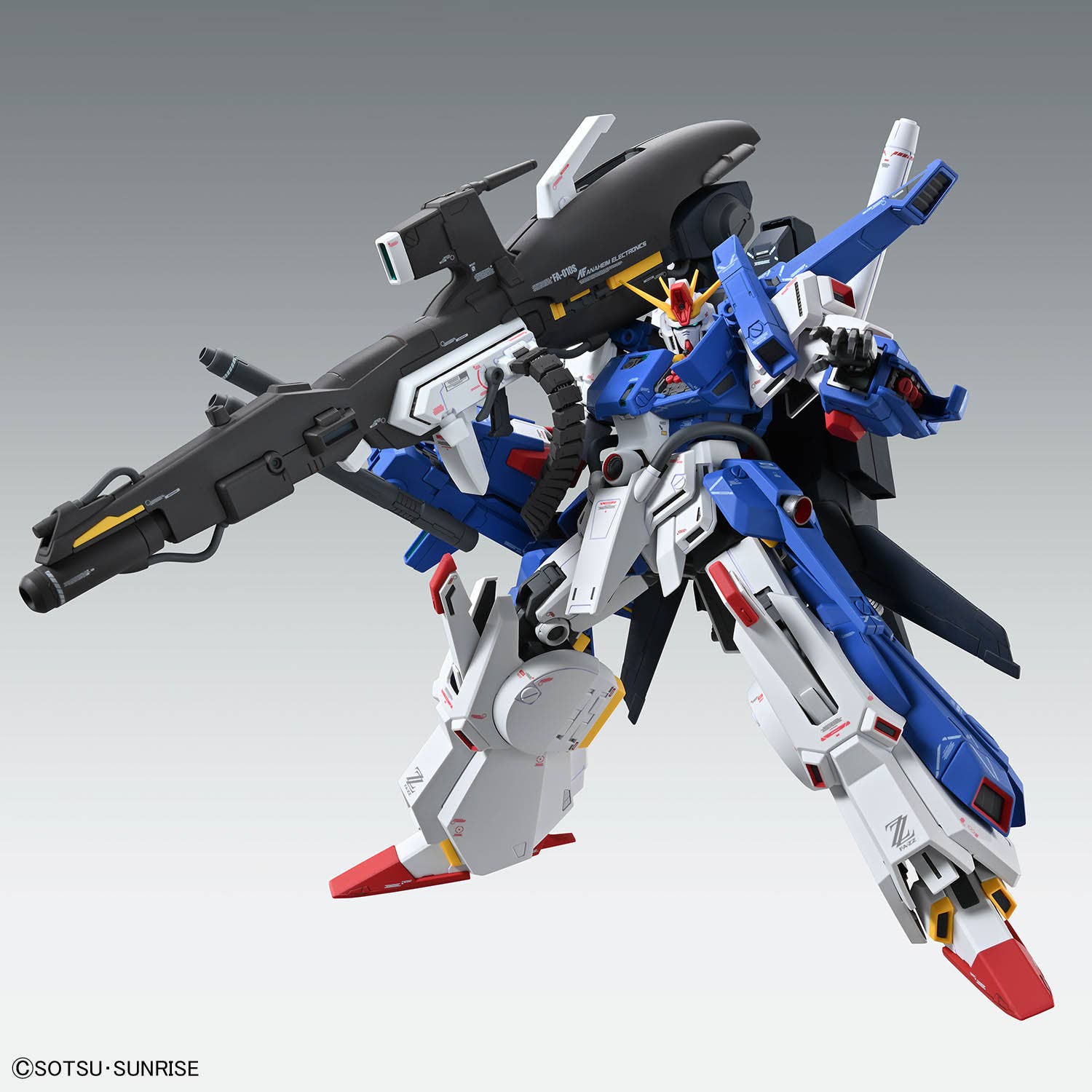 Hajime Katoki supervised Bandai's newest "Master Grade" Gunpla kit -- make way for the Full Armor ZZ Gundam, Ver. Ka, from "Mobile Suit Gundam ZZ"! The add-on armor can be rearranged to attach the Hyper Mega Cannon; you can also remove the add-on armor to recreate the Enhanced ZZ Gundam. The add-on armor parts have been carefully adjusted to fit the mech's main body, achieving proportions that don't give it a bulky impression. The Double Beam Rifle can be attached to the forearm, or held in the hands; the Hyper Mega Cannon can be attached to the backpack by replacing it with a missile pod. The forearm features a rolling mechanism which allows the add-on armor to move in tandem when raised horizontally to prevent interference. Order this truly impressive mech for your own collection today!