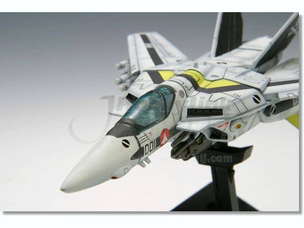 An all-new tooling of Roy Fokker's VF-1S from Macross. Very nice surface detail, with optional parts to model the landing gear either extended or retracted and an "in-flight" display stand. Can be combined with parts from the upcoming VF-1S Battroid kit to make a Gerwalk as well!
