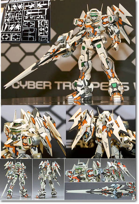 Let it be a challenge to you! This gorgeous injection-plastic kit of the Temjin 747J is sharply-molded in grey, off-white, and transparent green (and with polycaps for the joints) -- but to finish it off in the correct colour scheme, two sheets of water-slide decals are included. The pictorial instructions are clear, and putting the kit together as well as adding the decals should be relatively easy for anyone who's put together a few injection plastic models before. Relatively easy, but time-consuming -- set aside a couple of weekends for this one! Highly recommended.
