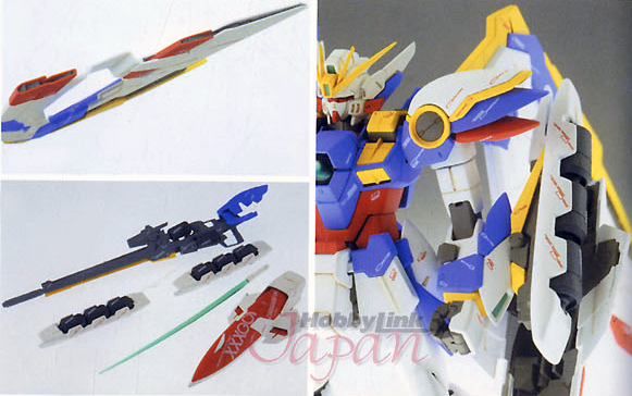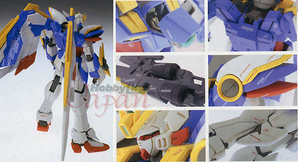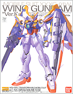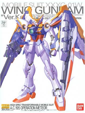 The gorgeous and ever-popular Wing Gundam gets the "Katoki" treatment, and in a Master Grade kit, no less! Katoki Hajime's designs are unique and appealing; combined with Master Grade detail and engineering, this is bound to be one of the hottest machines in the Master Grade lineup! Over 260 pieces on 13 runners, plus polycaps; everything is molded in color and snaps together, for ease of assembly -- and no need for paint! The usual foil stickers for eyes and other "glowing" parts are included, as is a sheet of clear "Gundam Stickers" with various warnings and markings on them; and of course Bandai's not forgotten their super-crisp rub-on transfers for the major designation markings! Highly-poseable and heavily-armed, this high-tech beauty also transforms into flight mode once completed! A real bargain for only 3,500 yen!