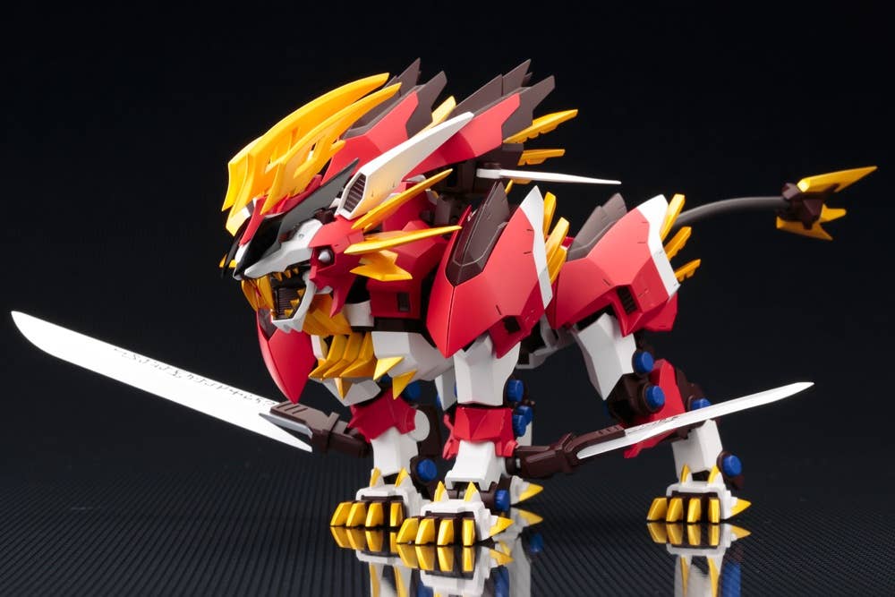The Hayate Liger evolved from the Murasame Liger, and is adapted for higher-speed combat, reaching a maximum speed of 420 kilometers per hour! Kotobukiya's second entry in its ZA (Zoids Aggressive) lineup is this elegantly designed, fully posable beast! The Hayate booster on its back can extend its left and right wings, and the center fin moves up and down as well. The Murasame knives can be carried on each of its front legs, too. Don't miss out--order now!