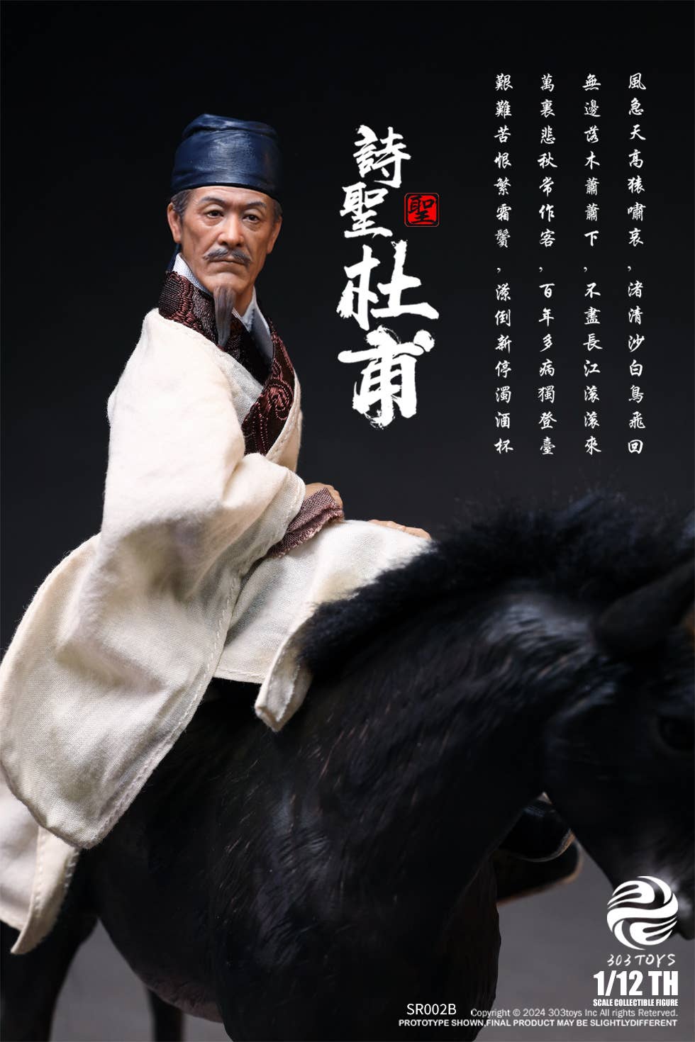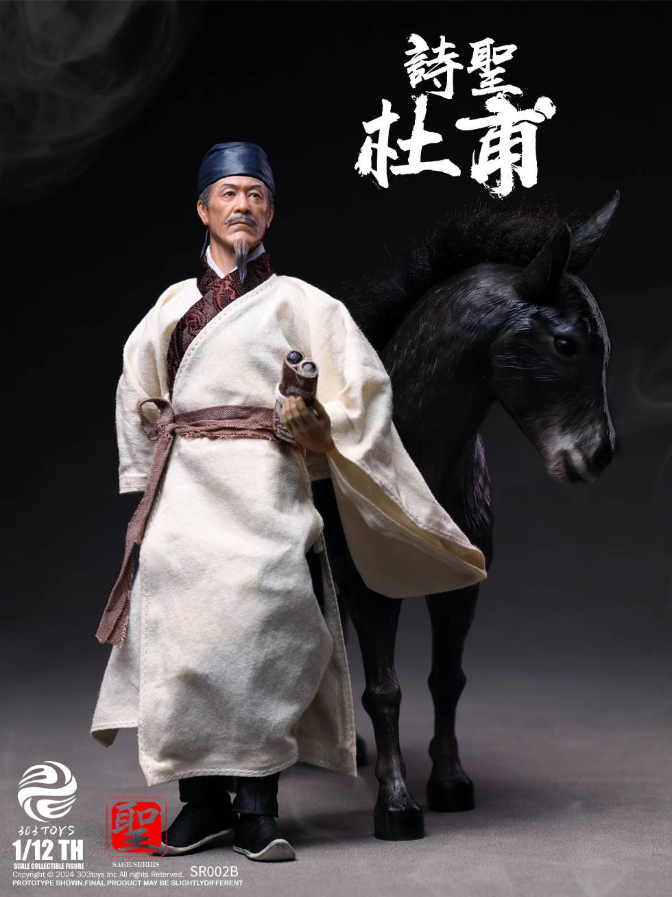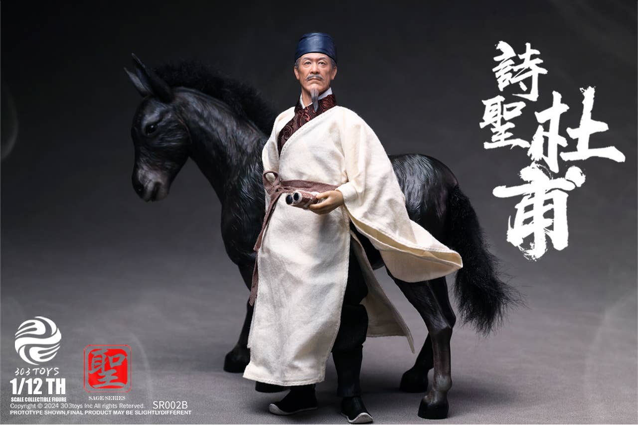 303 Toys, popular for their realistic Chinese historical figures, now brings us a 1/12-scale action figure of the poet Du Fu! This figure boasts overwhelming quality, and this Deluxe version comes with a donkey for him to ride. He'd be a truly unique addition to your collection -- place your order today!