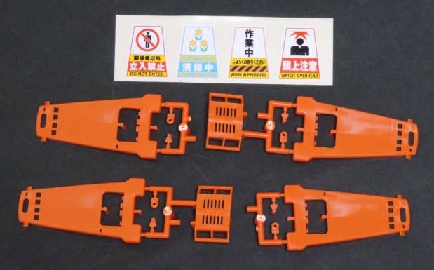 This clever model kit builds a folding display stand with a warning message of your choice -- options include "Do Not Enter," "Cleaning," "Work in Progress," and "Watch Overhead." Molded in orange; builds two stands.