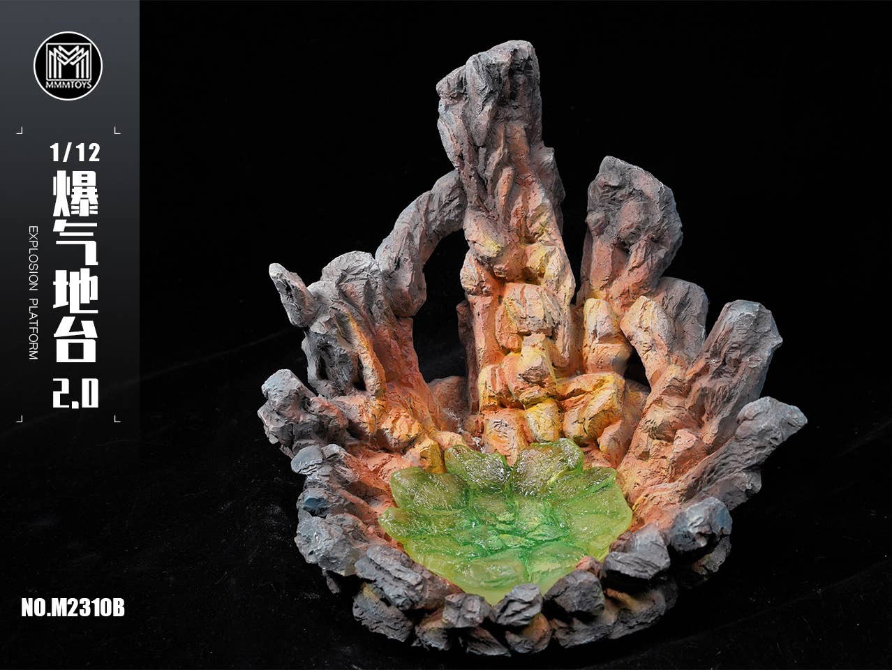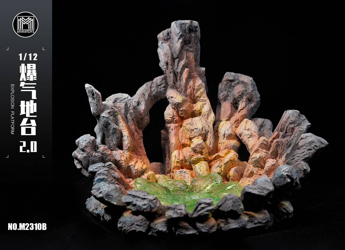 This new item from MMM Toys allows you to display your figures in the midst of a liquid green meltdown! It's illuminated by an internal light, and can be displayed with the light on or off. The realistically sculpted and painted rock surfaces will show off your favorite 1/12-scale figure to its best advantage -- order yours today!