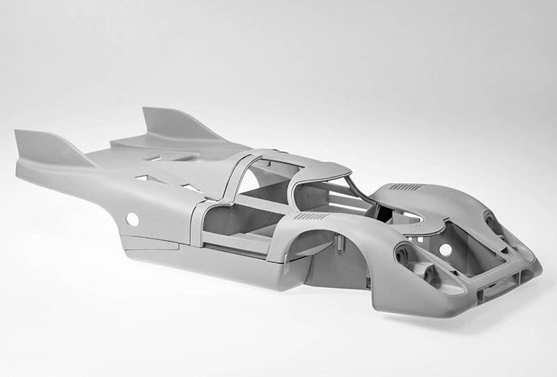 With the 917K’s overwhelming success the machine was further refined in preparation for the next season: vertical fins installed at the rear cowl, induction pots were placed on the engine cover, and various other modifications on the outlook were attempted by different teams. Continuing the previous year’s success, the 917K claimed victory at Le Mans once again, and dominated the competition in the 1971 season. We are proud to present the 1971 version of 917K as the next entry to our 1/12 full detail kit lineup.
