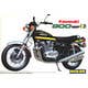 High-quality Aoshima bike kit of the Kawasaki 900 Z I Super Four with rubber tires, springs for the fork and tubing for engine hoses, etc. Includes large trees of plated parts for forks, exhausts, and engine details.