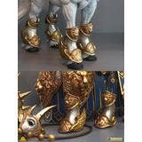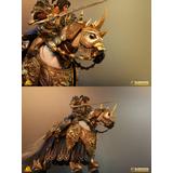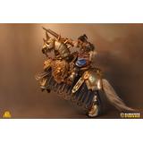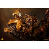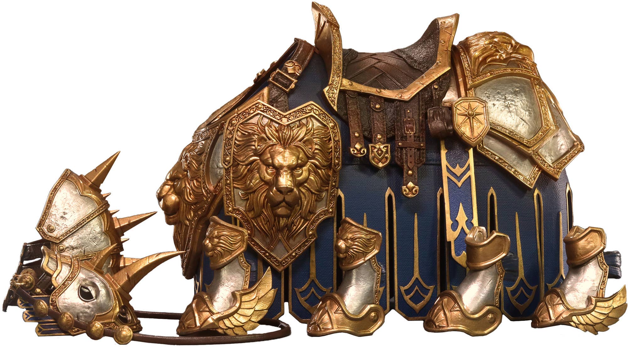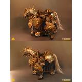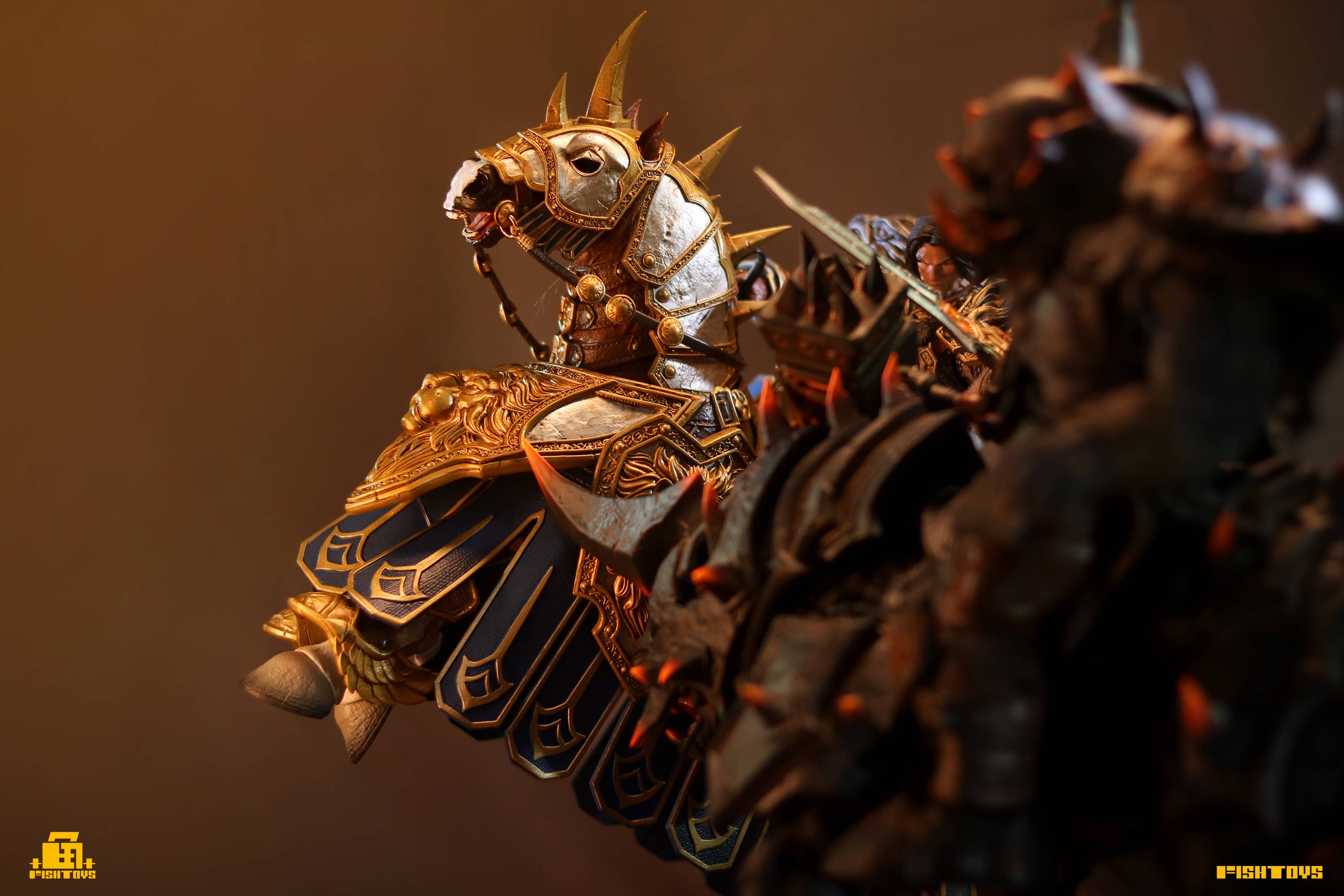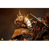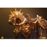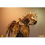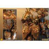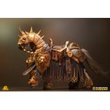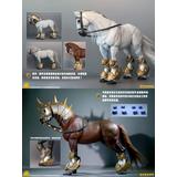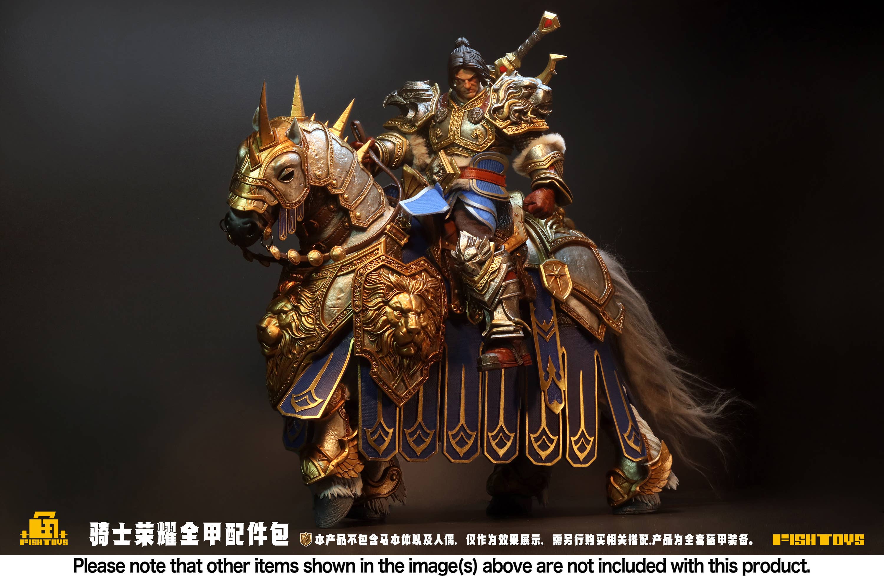 Fish Toys brings us a gorgeous 1/12-scale full armor set for horse action figures! The golden armor features a lion design that gives it a striking presence with its rich sculpt and metallic paintwork. The armor's neck guard, greaves, and shields are magnetic, making them easy to attach and detach, which allows for convenient pose changes and customization! A bonus shield will be included with the first run of this item, too. Order yours today!
