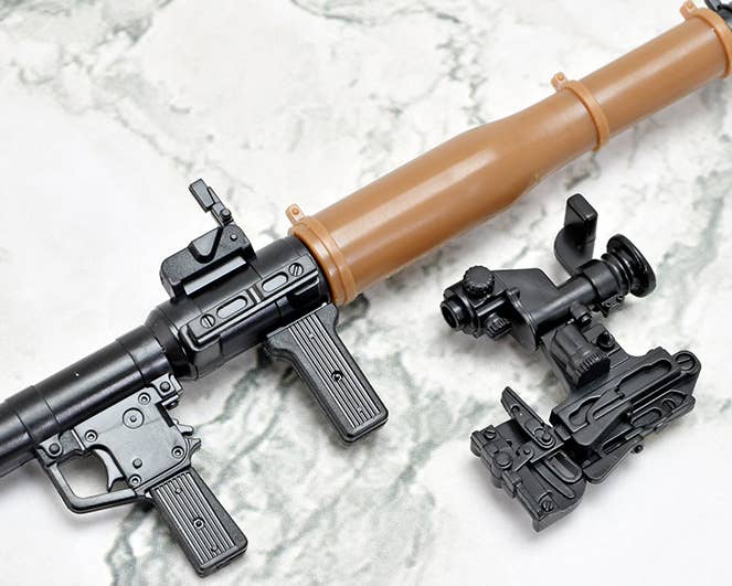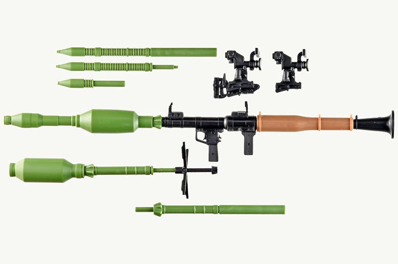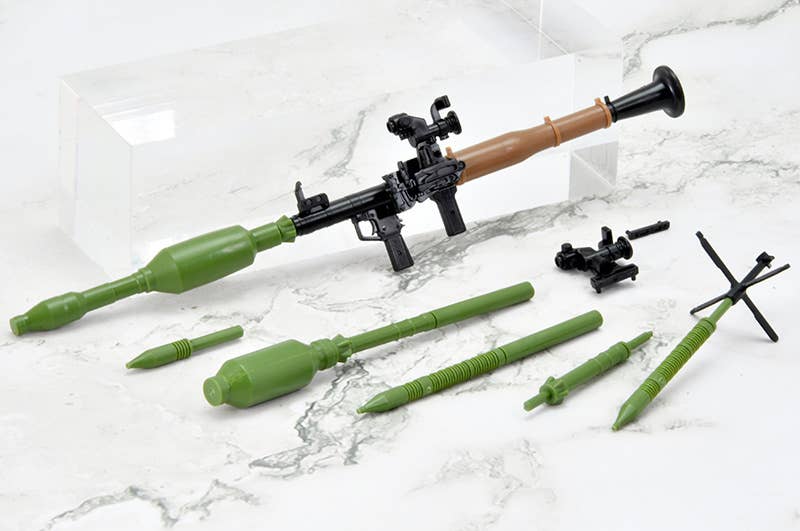 Tomytec's "Little Armory" version of the RPG-7V2 faithfully reproduces three types of warheads, iconic to the modern RPG-7 -- including a tandem HEAT round, a thermobaric round, and a fragmentation round, as well as an optical sight equipped with a range-extending attachment. Thanks to a segmented design, the warhead component can be assembled to depict three distinct stages: loaded into the launcher tube, ready to fire (positioned just prior to loading), or in flight with stabilization fins deployed post-launch. The optical sight can be attached or omitted, and three distinct plastic colors are used to accurately replicate the warhead, the main body, and the heat shield cover. The box art features an original illustration created exclusively for this release by the artist Nanaroku! Order yours today!