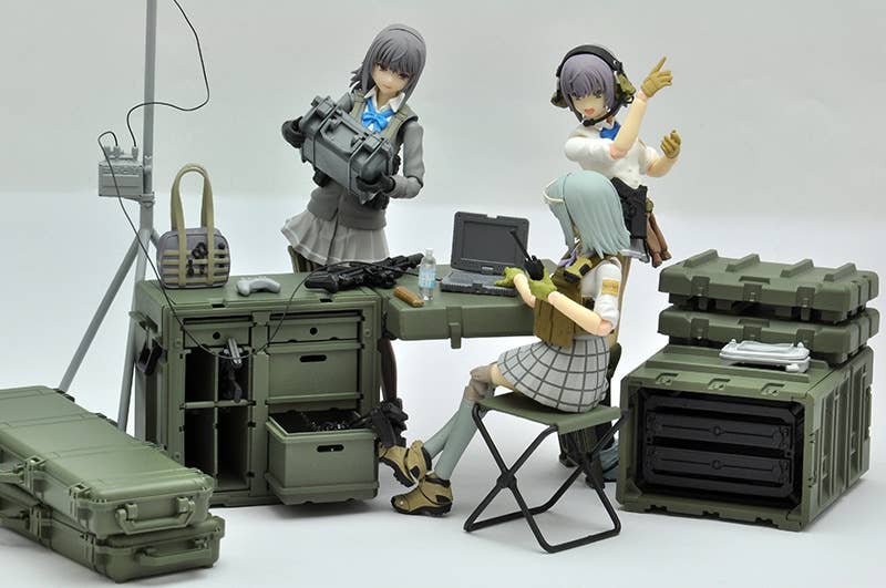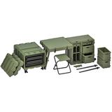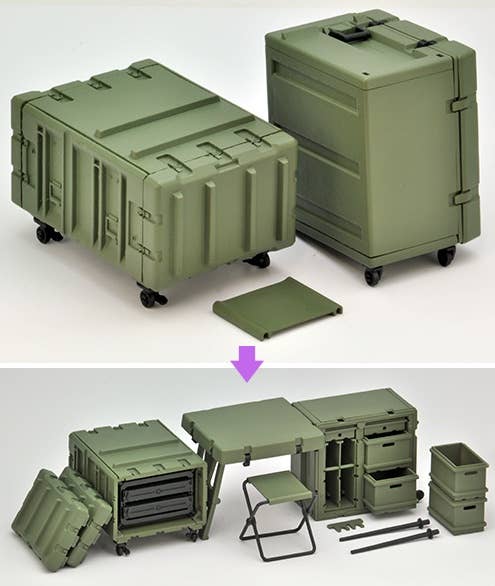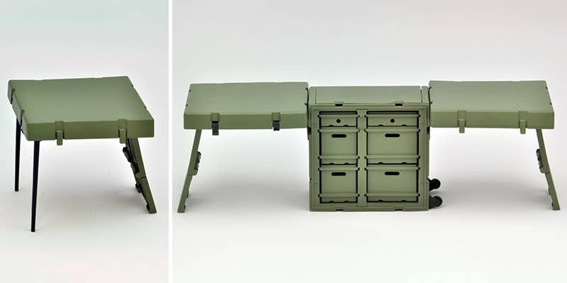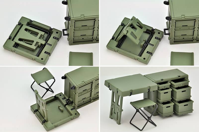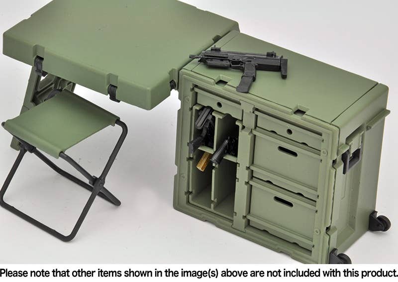 This rugged field desk set lets your Little Armory girls (and other 1/12-scale figures) get their paperwork done even on the front lines! It's similar to mobile container desks and server containers used at U.S. military front line operation bases and command centers. The reinforced plastic container itself becomes a military office desk that can be quickly moved, deployed, and withdrawn on the battlefield. It's also flexible in design -- you can make part of the cabinet a gun rack for self-defense firearms, and the cabinet can be assembled with drawers or gun racks. Multiple sets can also be connected together. Order yours today!