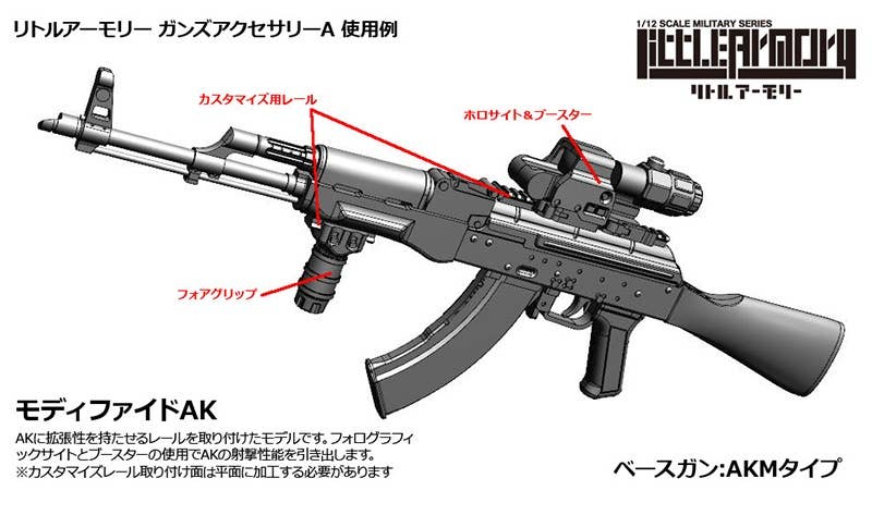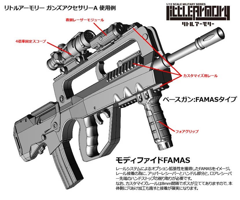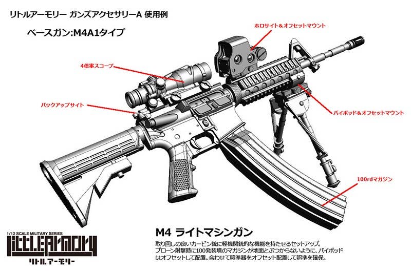 Give your 1/12 scale action figures the accessories they deserve with this kit featuring accessories to upgrade your gun kits with! Parts include a weapon light, short scope, magazines, booster, laser module, and more. Order today!