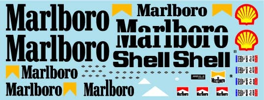 This is a set of beautifully printed decals, as shown here, featuring additional logos for the 1/12 McLaren MP4/4 by PMA.