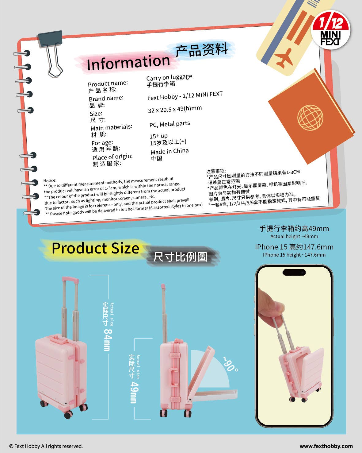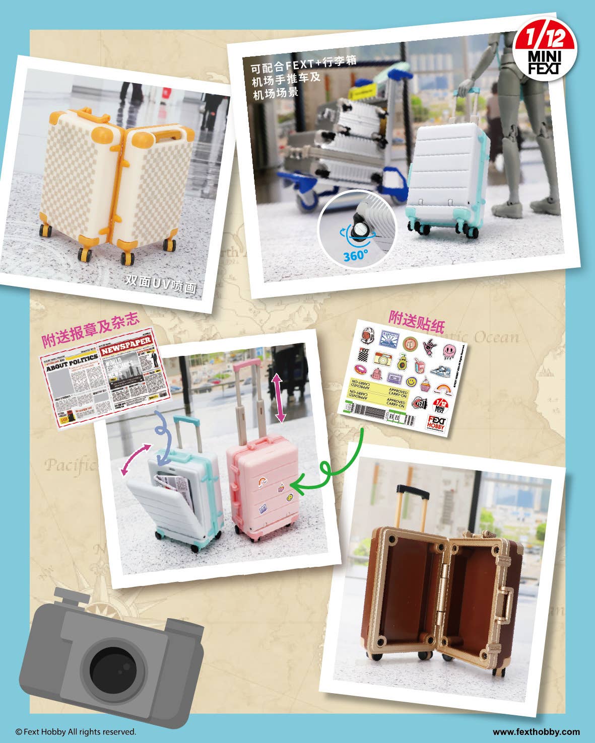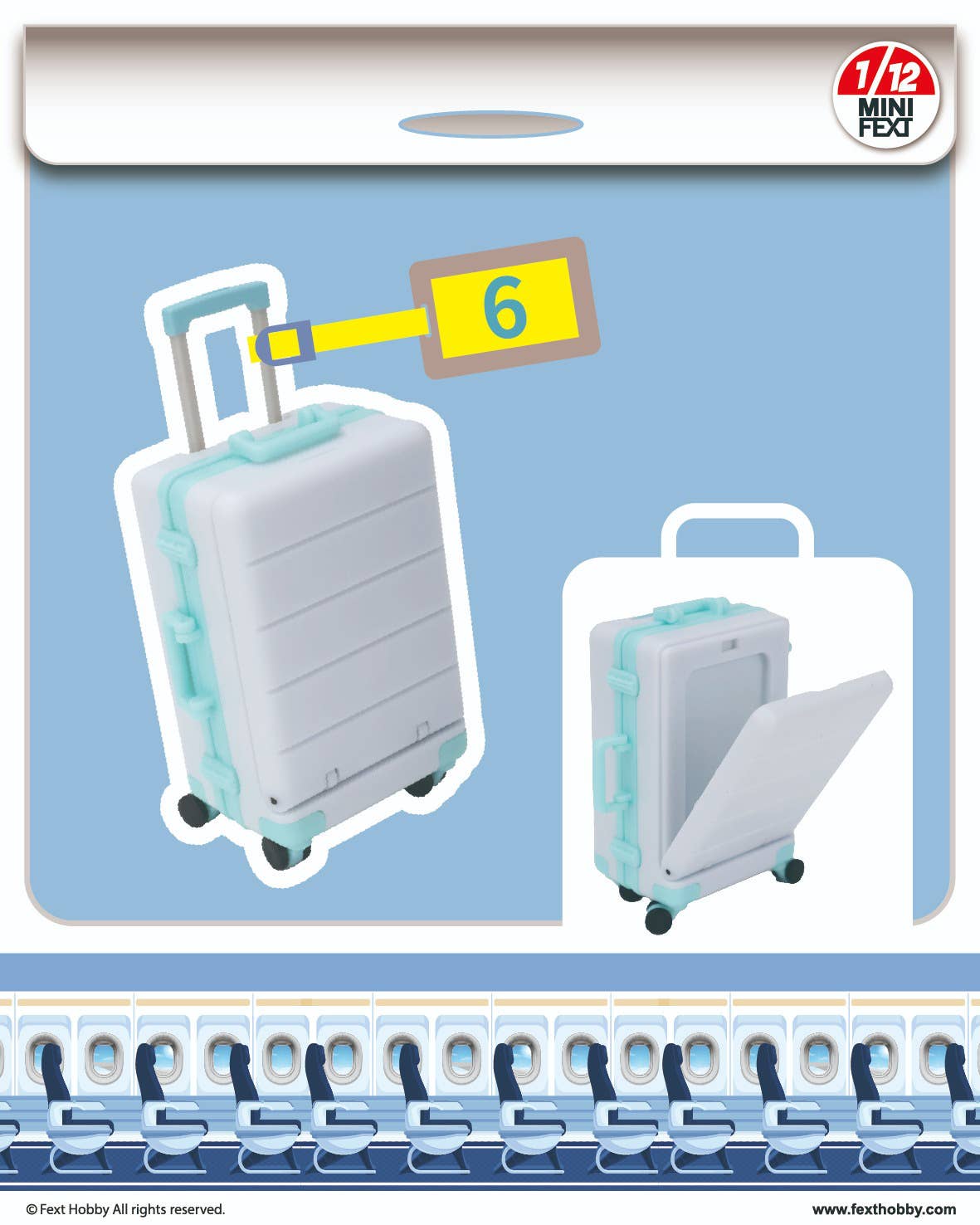 This highly detailed lineup of miniature carry-on luggage comes to us courtesy of Fext Hobby! Each 1/12-scale piece of luggage opens and closes, and the wheels are movable. They're meticulously crafted down to the last detail, and your 1/12-scale figures will love them! Stickers are included, too. There are six different items to collect and trade, plus a secret item; they're randomly packed in boxes of six. Order yours today!