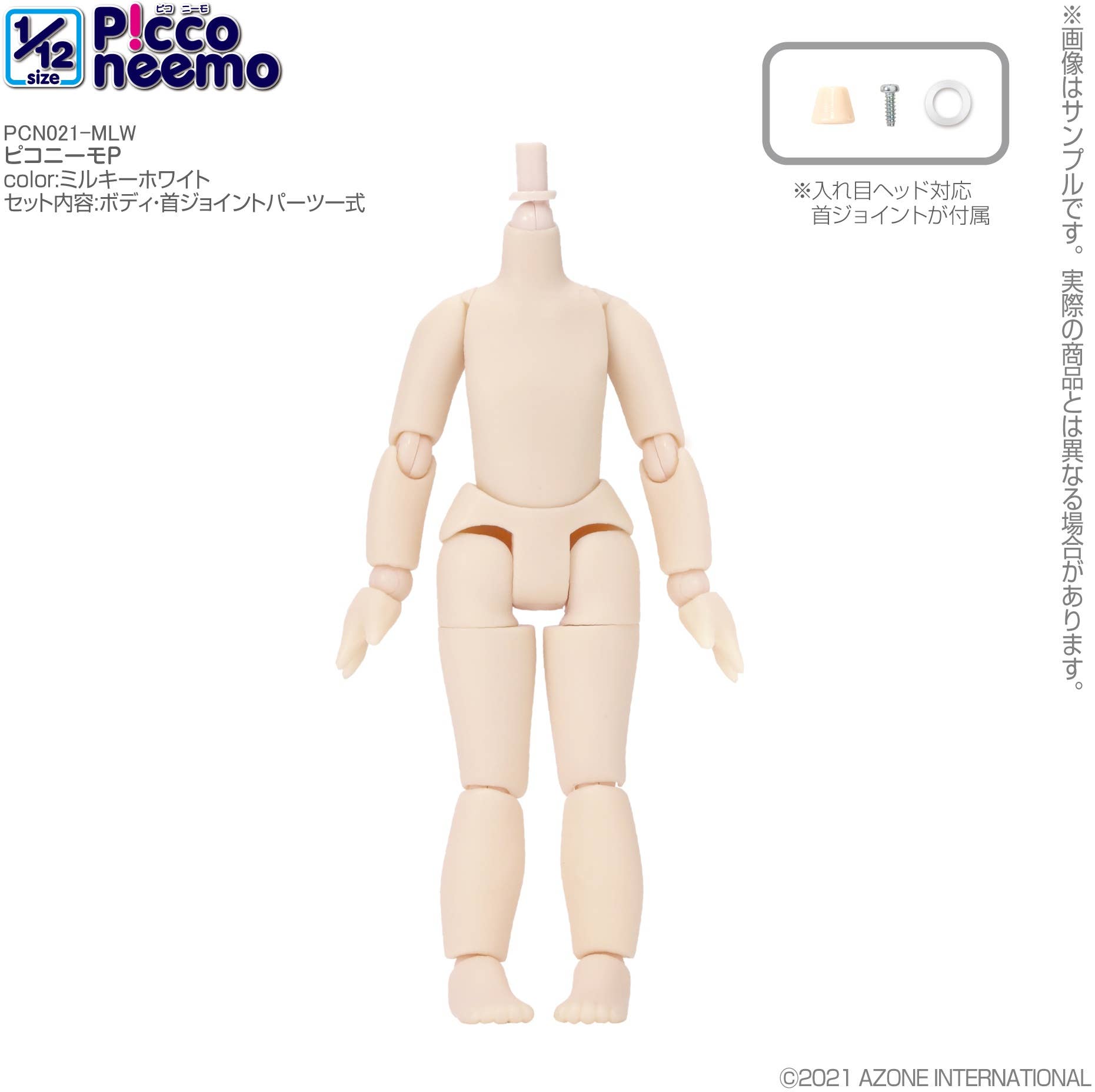 Attention, doll customizers -- here's a new Picco Neemo doll body with a milky white skintone! This fully posable doll body does not come with a head, but neck joint parts are included so you can easily attach the head of your choosing. Order yours today!
