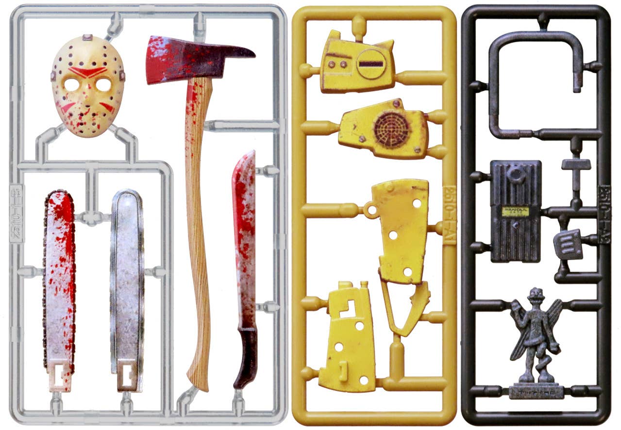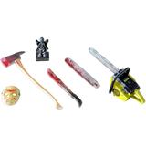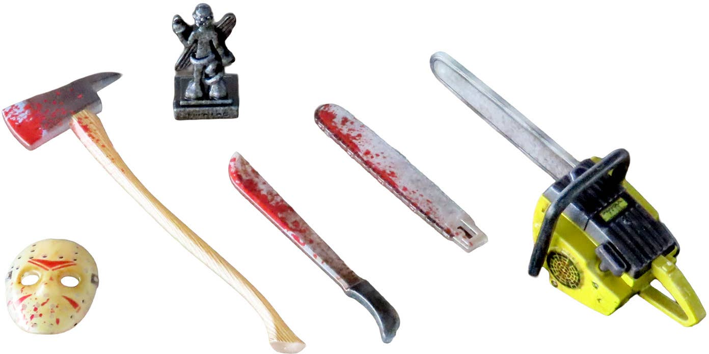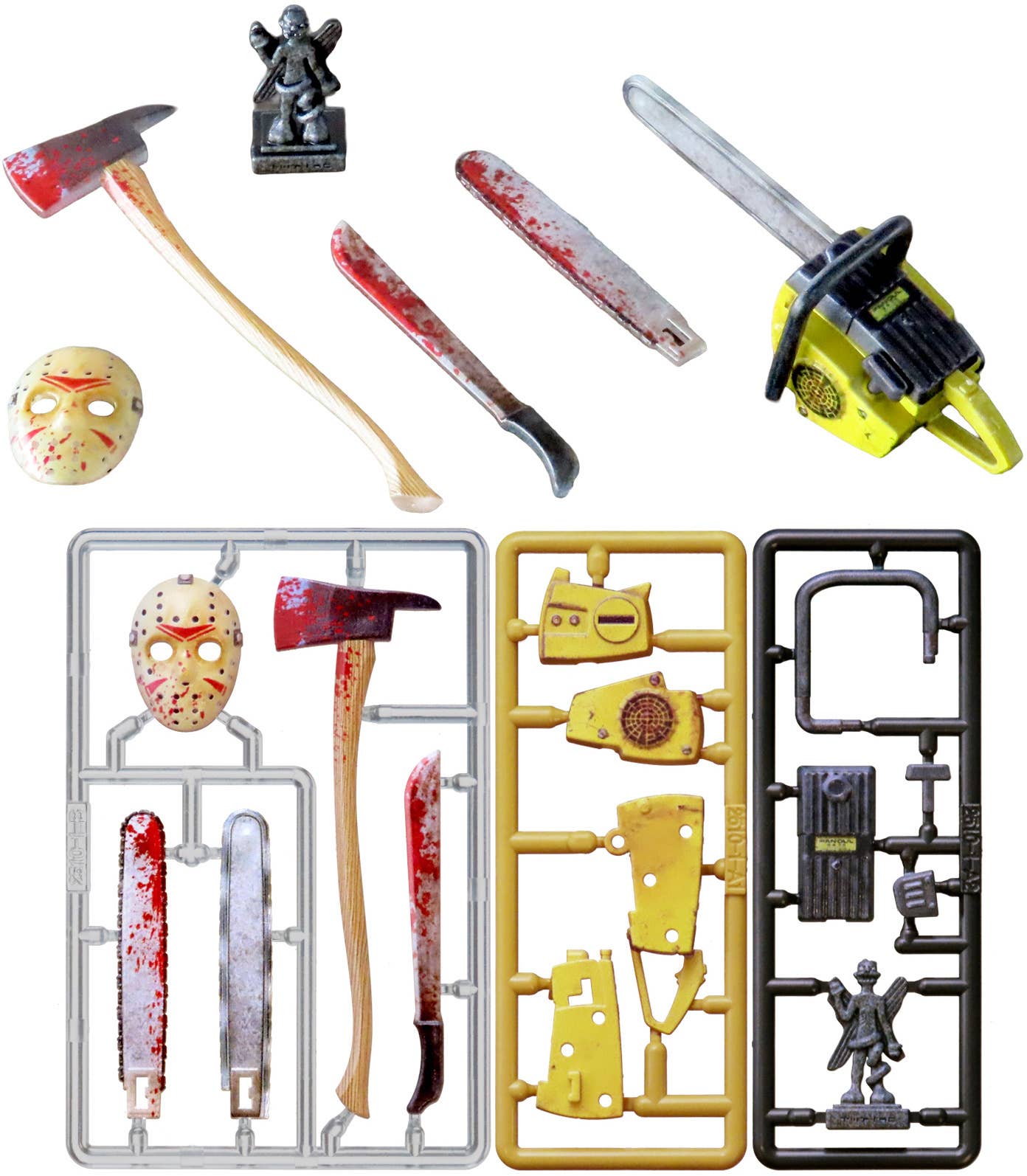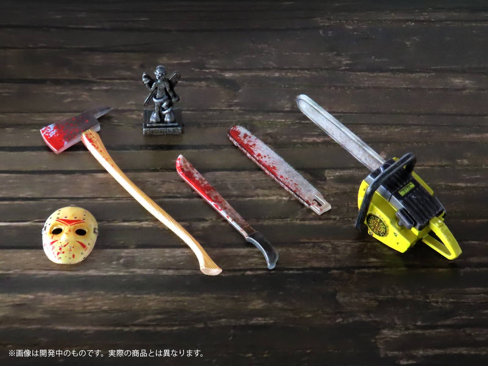 This "Figure Play" item from MIC allows your 1/12-scale figures to get their hands on a selection of props from nostalgic horror movies that once terrified the entire United States! The legendary yellow chainsaw comes with interchangeable blades to display it in a stationary or rotating position. You'll be able to recreate famous scenes with a variety of other movie staples, too, including a hockey mask, axe, and machete, all realistically printed! A mini stone statue reminiscent of Pazuzu is also a must-have item for anyone wanting to get into the world of nostalgic horror films.