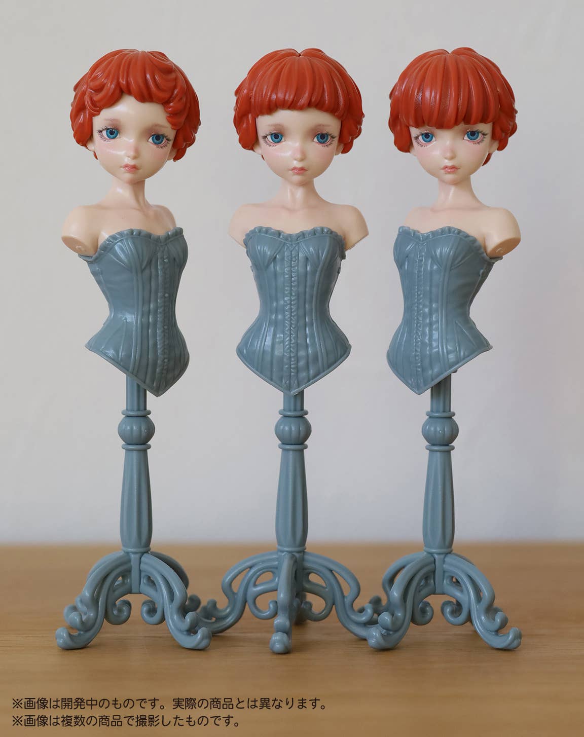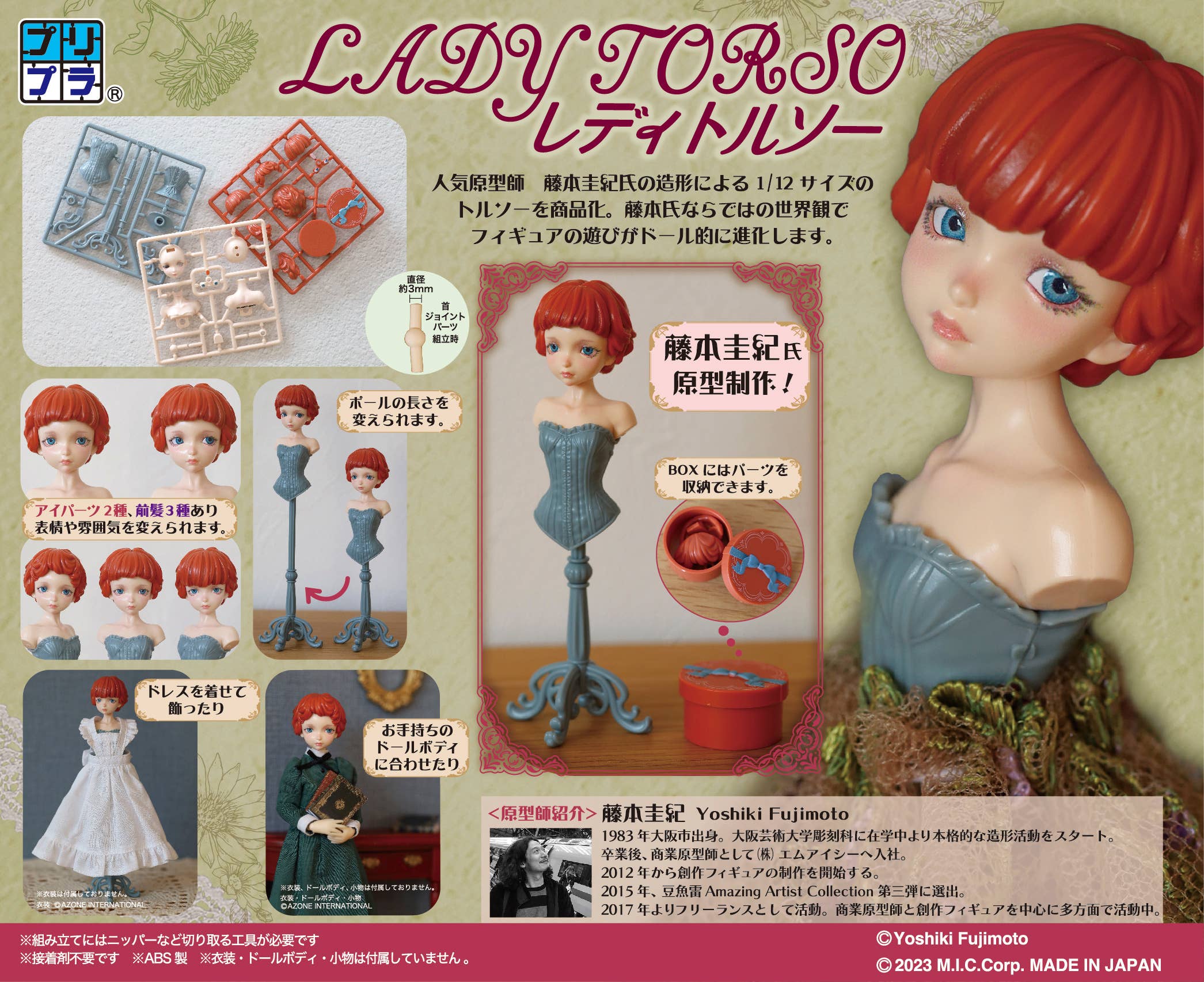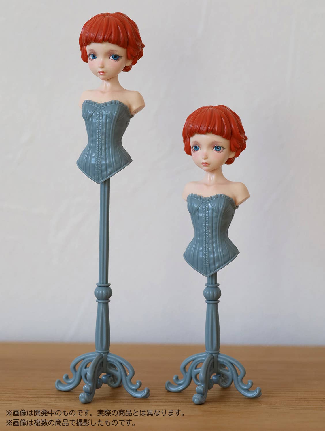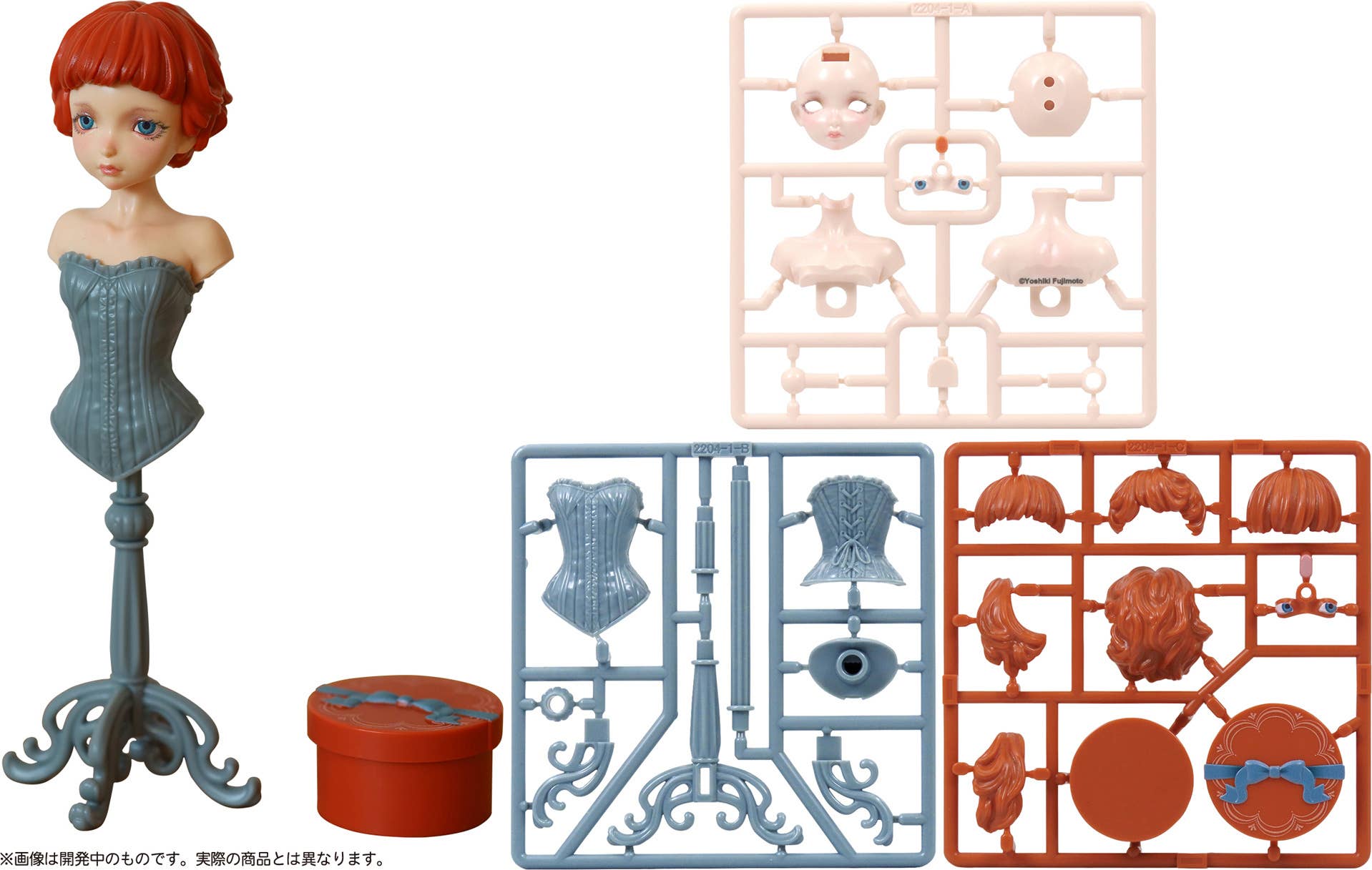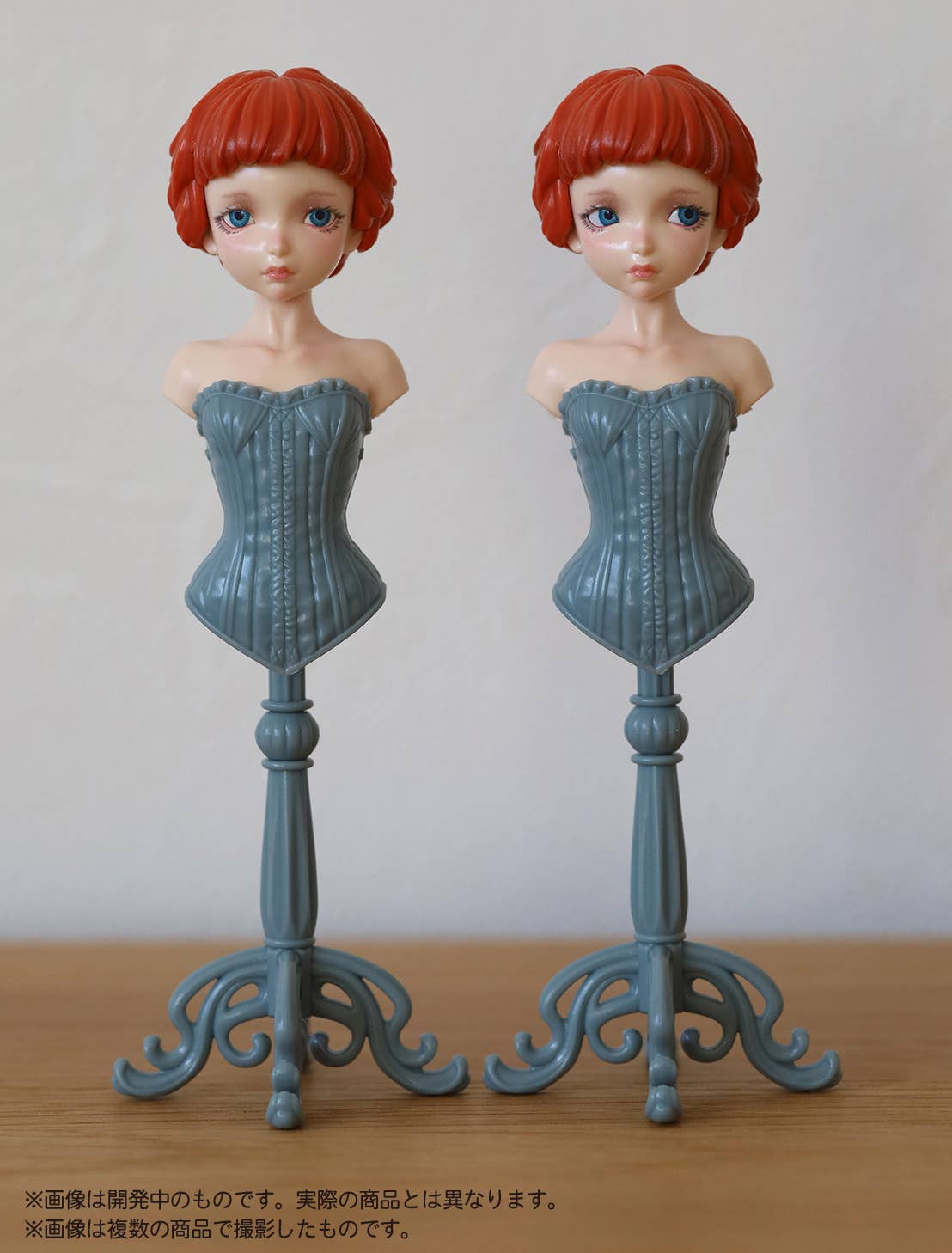 This 1/12-scale doll torso sculpted by the popular artist Keiki Fujimoto is now part of the "Puripura" model-kit lineup from MIC! You can use it to display 1/12-scale doll costumes after assembly, or you can use the head as a doll head by attaching it to a doll or figure body of the appropriate scale. A 3mm-diameter neck joint is included; please be aware that it may not be compatible with the doll/figure body of your choice. There are two types of eyes and three types of bangs, and you can change the doll's expression and atmosphere with the different exchangeable parts. The height can also be changed with two types of supports, and a special box is included to store unused parts in. This kit is molded in color, and glue is not required for assembly. Order yours today!