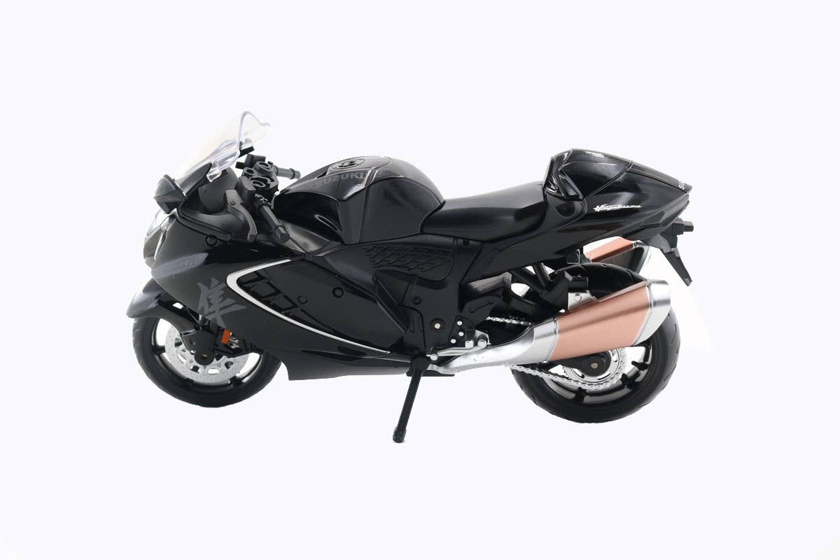 This is a completed plastic or die-cast motorcycle model for display.