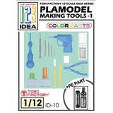 In case your 1/12-scale figures would like to take up modeling, here's a set of accurately scaled modeling tools just for them! These 3D-printed accessories can be used without painting. The set includes nippers, an electric drill, a hand drill, pin vise, drills and drill cases, two types of model adhesive (with clear resin used for the bottle), and more! Scissors and templates made of photo-etched parts are also included. Order yours today!
