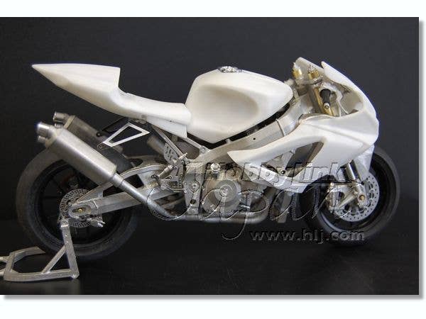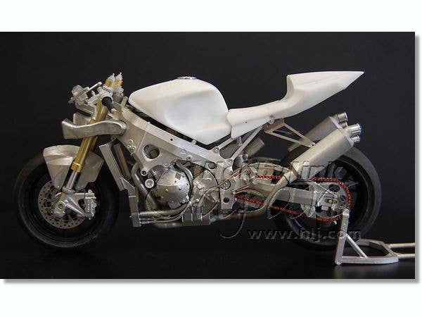 Here's a beautiful unassembled multi-media full kit of the Yoshimura Suzuki GSX-R 1000 winner of the 2007 Suzuka 8 Hours race. When we say "multi-media," we mean it: The kit is full of turned metal parts, clear plastic parts, resin parts, vacu-formed parts, stainless pipe, brass line, cords, rubber tires, pins, screws...really, too much media to list! All packed together in one box to create one of the finest bike kits available anywhere. Includes decals and detailed instructions in English and Japanese.