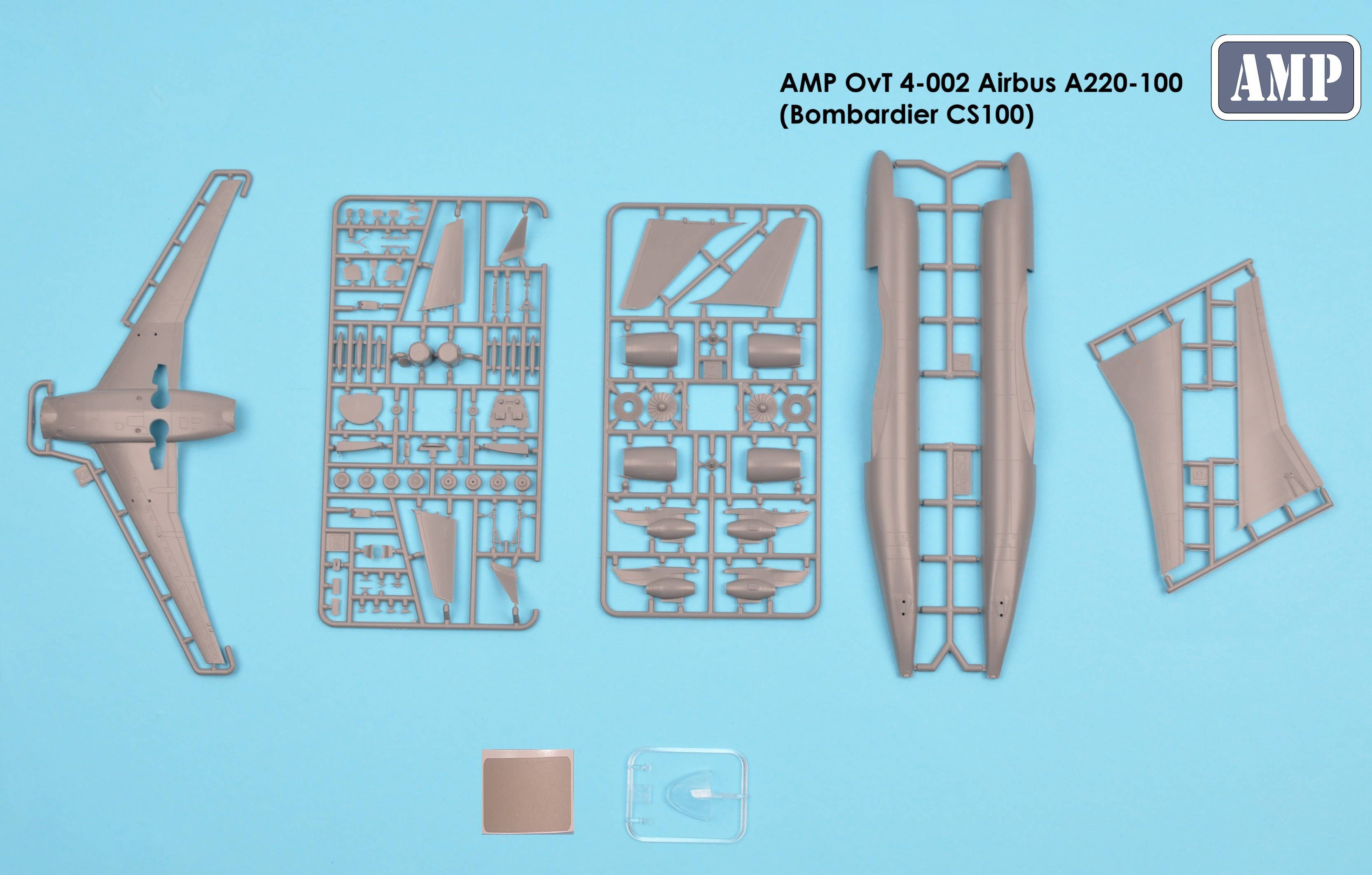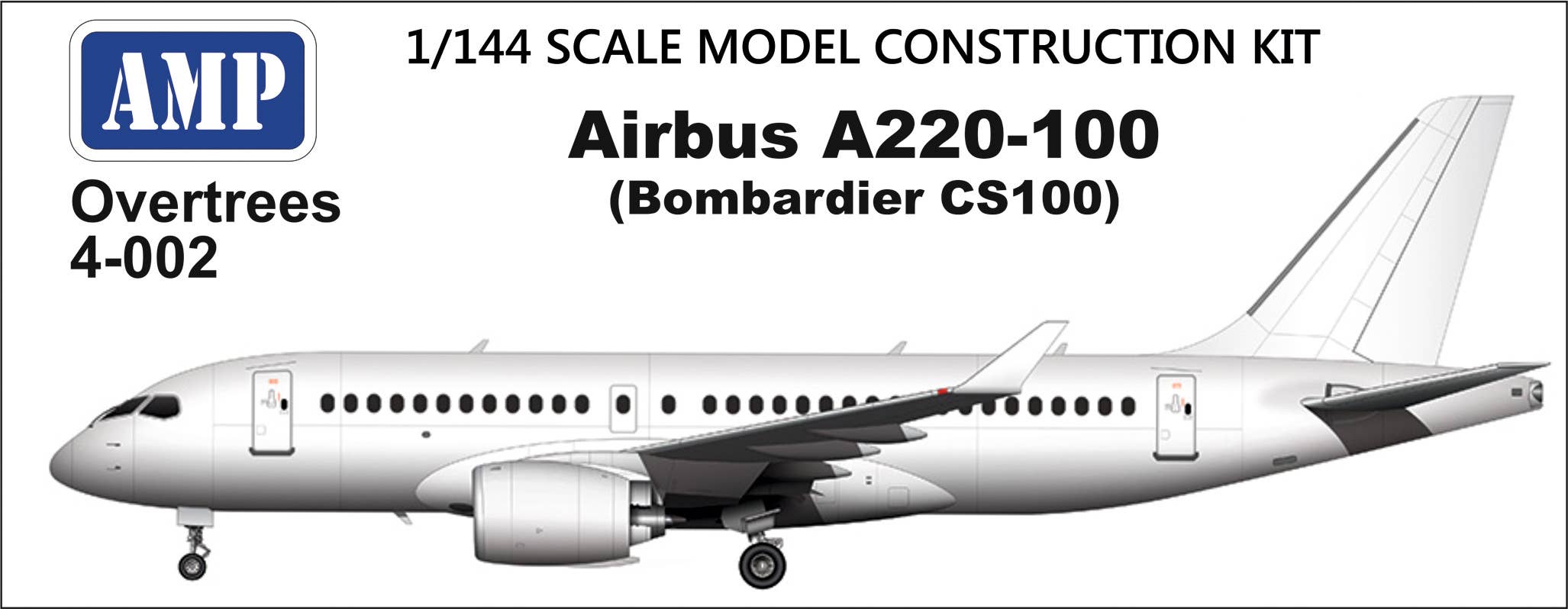 AMP brings us a limited-edition 1/144-scale "Overtree" model kit of the Airbus A220-100 (Bombardier CS100) passenger aircraft! This kit includes only injection-molded parts and assembly diagrams, packaged in a plastic bag; decals are not included, allowing modelers to use commercially available decals. Order yours today!