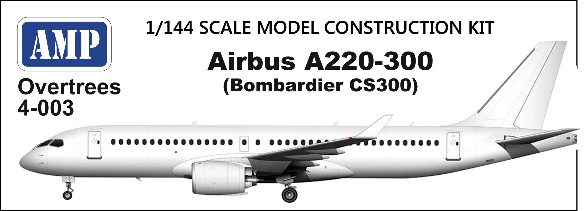 AMP brings us a limited-edition 1/144-scale "Overtree" model kit of the Airbus A220-300 (Bombardier CS300) passenger aircraft! This kit includes only injection-molded parts and assembly diagrams, packaged in a plastic bag; decals are not included, allowing modelers to use commercially available decals. Order yours today!