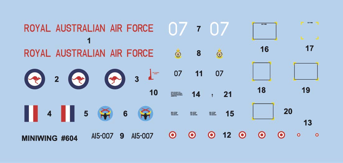 This is a sheet of water-slide or dry transfer decals for marking aircraft models.
