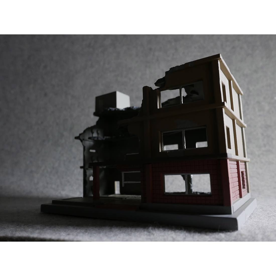 The DCM03 Dio-Com Destroyed Building B is here! Tomytec brings us a new 1/144 scale series of destroyed building to create dynamic and realistic displays. It comes fully painted with weathered shading for added realism. Scenery accessories, such as debris, are also included to enhance the diorama. It measures approximately 13cm x 7cm x 9cm. Order now!
