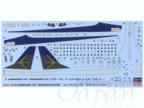 Limited reissue of the Hasegawa 1/144 scale Embraer 170 kit with markings for company demonstrators prototypes #4 and #5. For marking details please see box image above.