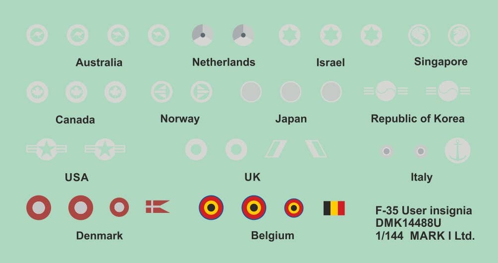 This is a sheet of water-slide or dry transfer decals for marking aircraft models.