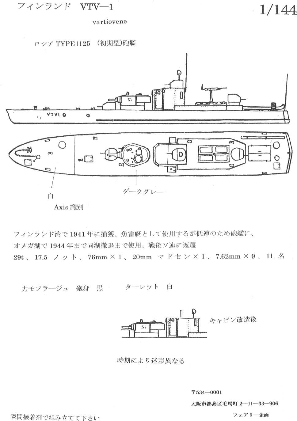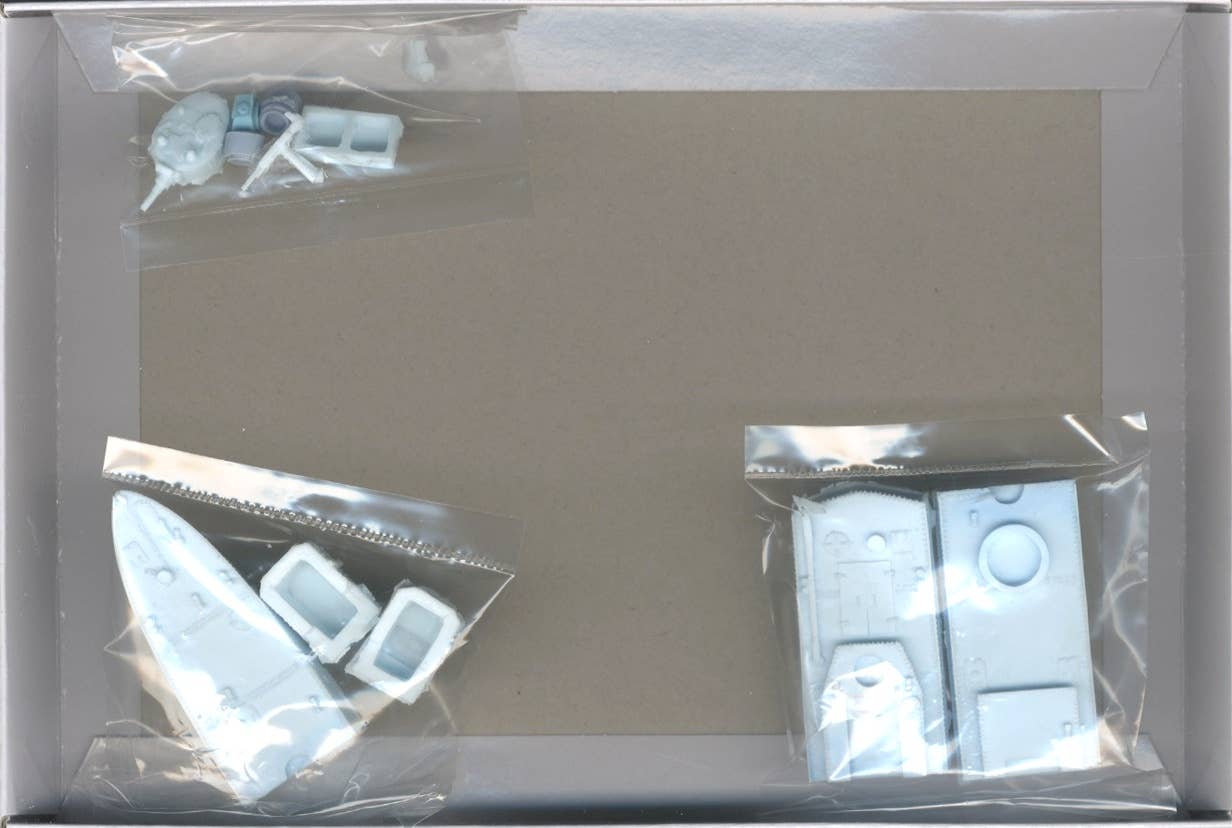 This resin kit contains parts to build one scale vartiovene gunboat -- Russian Type 1125 (early).